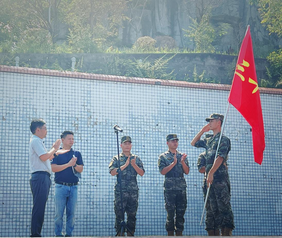 最后,学院经理张应良向连长授旗,为期一周的军训正式拉开帷幕。