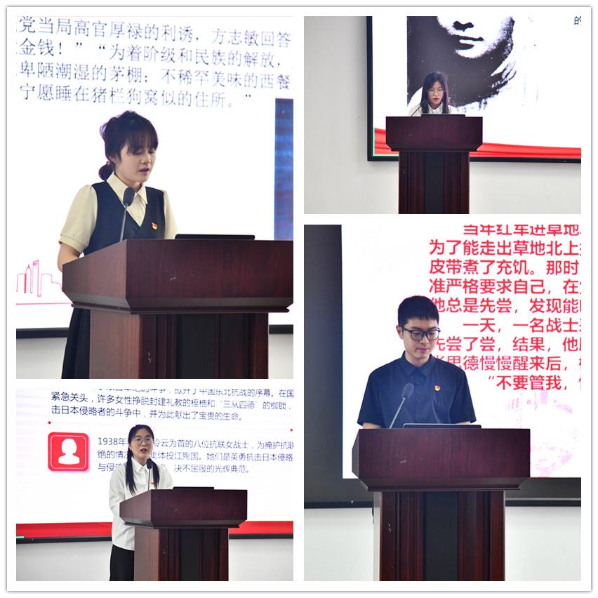 八位党员代表用一个个精彩的故事,将一个个生动的人物形象、历史事件展现在我们面前。中国革命史上不朽的丰碑、中华民族的英雄史诗、人类历史上的伟大壮举——长征。“八女英灵,永垂不朽”东北牡丹江畔八女投江的悲壮故事。革命烈士方志敏、英雄模范张思德、革命先锋萧楚女、民主战士闻一多和沂蒙母亲王换于的英雄事迹。