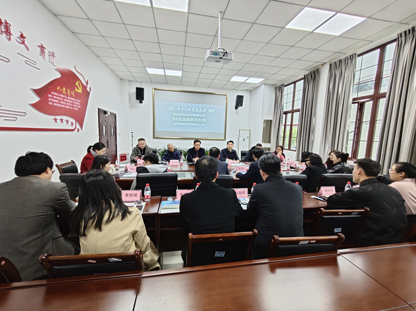 3月24日,经济管理学院财政金融系教工党支部来k1体育交流指导工作。学院副经理胡继宽、工会主席况云武以及国际贸易与营销系教师参加座谈。