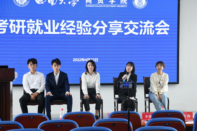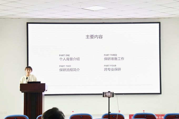 林金玉同学从自身经历出发,从考研的初心、学校和专业选择、信息获取、备考过程等方面详细介绍了自己的经历。张竞帆同学总体阐述了保研的基本流程,包括成绩要求、申请方式、时间节点等,并分享了跨专业保研的注意事项。卢游同学分享了考公面试时的经历,向学弟学妹们传授了面试技巧。孙启明同学强调了简历制作的重要性,建议学弟学妹要根据用人单位的人才需求去针对性地完善简历。刘蝶同学则分享了出国深造的经验,她以自身的留学准备为例,谈到实习经验对于海外名校的吸引力,建议学弟学们们要尽可能地丰富实习经历。
