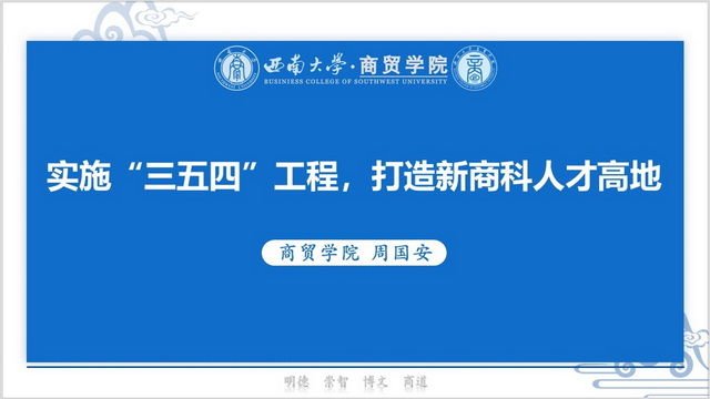 此前,学校启动了第二批“三全育人”综合改革试点的遴选工作。公司党委书记周国安作为项目负责人,结合学院前期工作基础、未来发展路径和人才培养特色,以《实施“三五四”工程,打造新商科人才高地》凝炼学院“三全育人”综合改革方案,顺利完成申报工作。随后,项目顺利通过答辩和专家评审,脱颖而出获得批准。