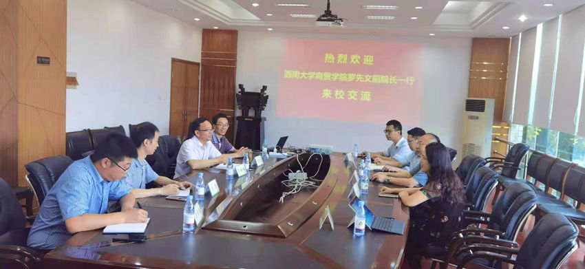 7月14日上午,k1体育副经理罗先文,智慧管理实验技术中心主任郑蔚,智慧物流与管理系主任沈忠明、副主任双琰一行前往重庆邮电大学经济管理学院考察学习,受到重庆邮电大学经济管理学院经理万晓榆,副经理卢安文,实验中心主任刘进,电子商务系副主任田帅辉、教授付德强的热情接待。