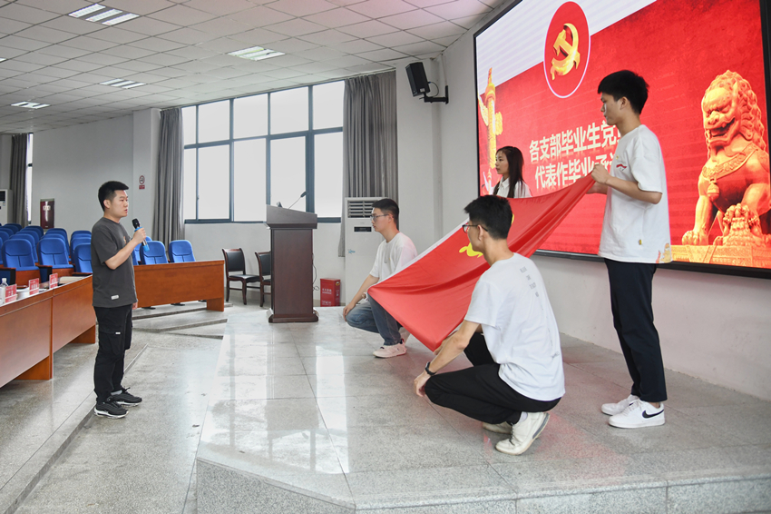 兰英副书记及在场的党支部书记向毕业生党员代表赠送了《共产党宣言》读本,勉励毕业生党员同志学习劲头常抓不懈,牢记党员身份,时刻保持共产党员先进性。10名毕业生党员代表在党旗下庄严承诺,承诺在未来的工作生活中永葆初心,牢记使命,砥砺前行,严守党纪,求真务实,为中华民族的伟大复兴贡献自己的力量。