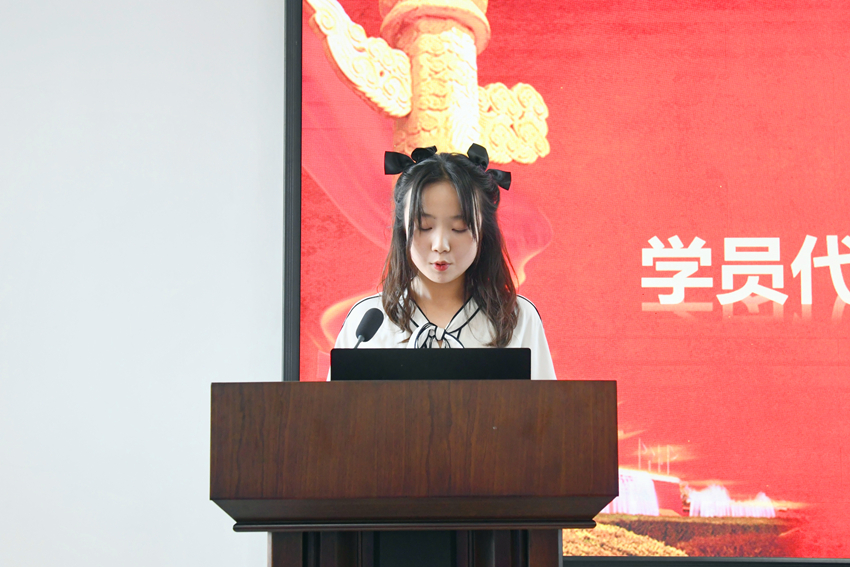 典礼伊始,全体肃立奏唱中华人民共和国国歌。培训班班主任刘莉莉宣读了《中共k1体育委员会党校学员守则》。随后,学员代表曹瑞芸同学发言。她代表培训班学员郑重承诺:认真学习,尊师重道,完善自身,认真严肃对待每一次党课。