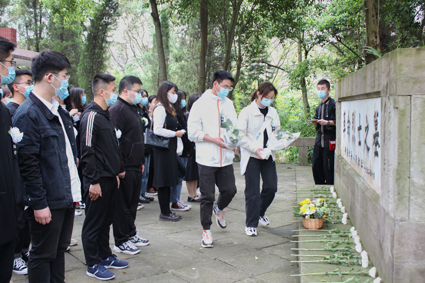 活动伊始,参与活动的全体师生在烈士陵园区墓碑前鞠躬默哀;随后由员工代表献上鲜花;最后由全体同学依次献上悼念胸花,表达对革命先烈的崇敬和哀思。