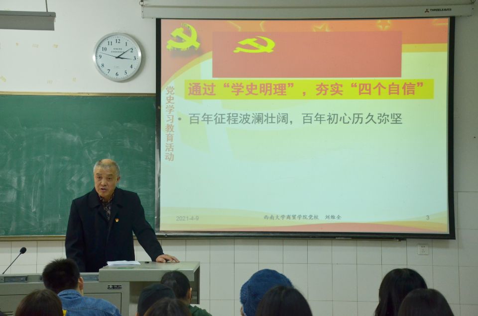 4月9日下午,员工第一党支部全体党员参加了一堂《通过“学史明理”,夯实“四个自信”》的专题党课。学院特别邀请退休老党员刘维全老师为支部授课。