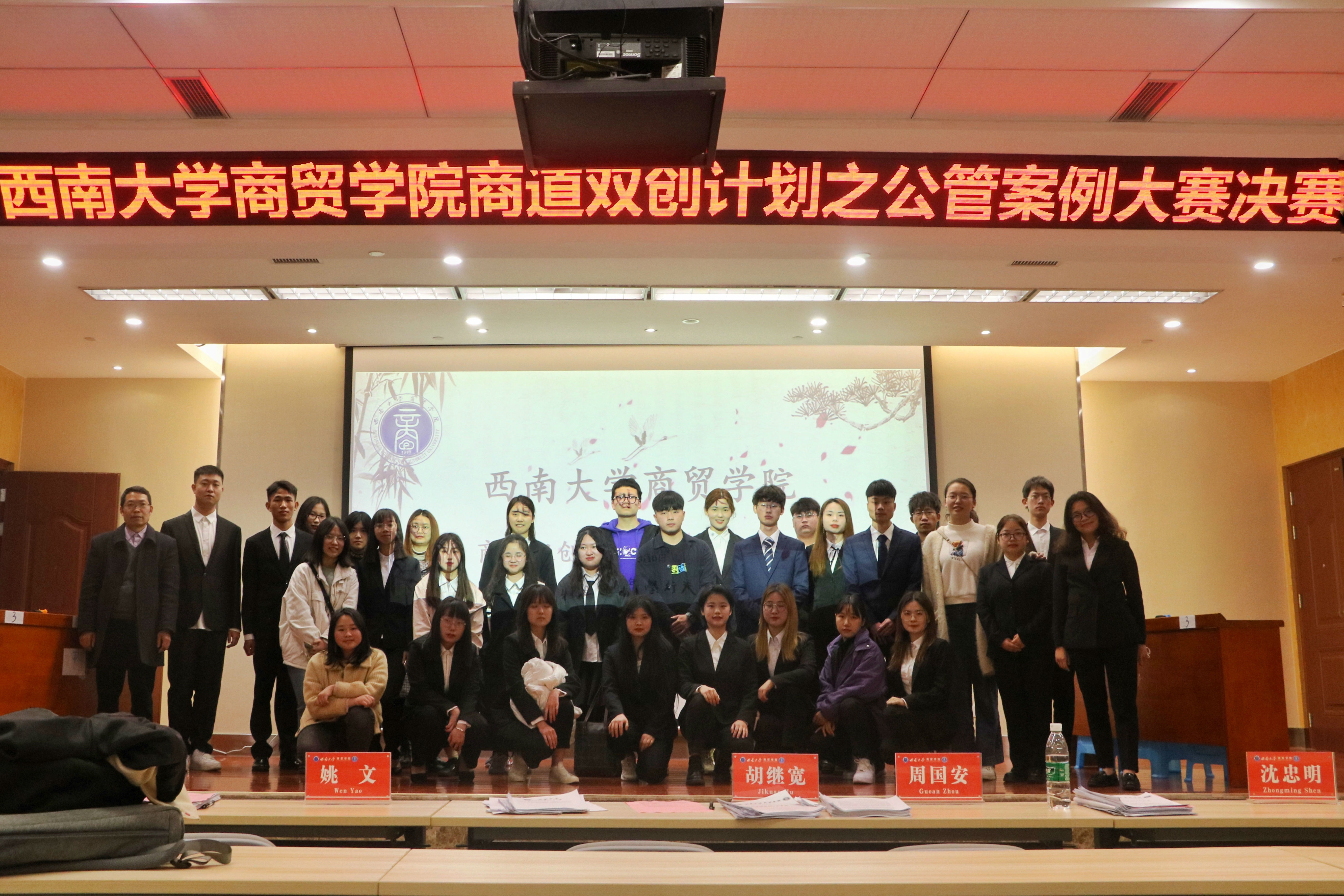 为培养老员工创新创造精神,提升公共管理专业能力,3月5日,学院在7B101报告厅举行“商道双创计划”之公管案例大赛决赛。公司党委书记周国安,副经理胡继宽,经理助理、公共事业管理系系主任沈忠明,经理助理、市场营销系主任姚文,公共事业管理系教师魏大明等专家作为评委出席本次决赛。