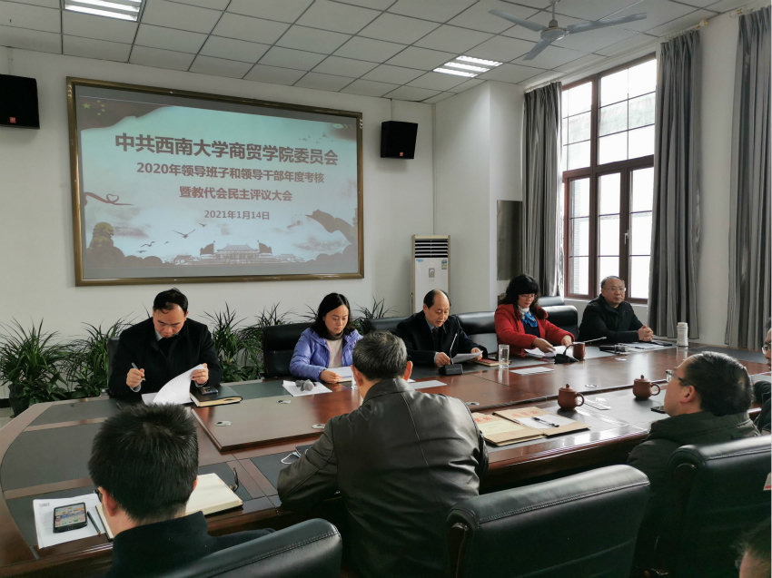 1月14日,学院在8401会议室召开2020年领导班子和领导干部年度考核暨教代会民主评议大会。学院全体教职工参加大会。公司党委书记周国安主持会议。包尔泉同志、黄富林同志受学校委派出席大会。