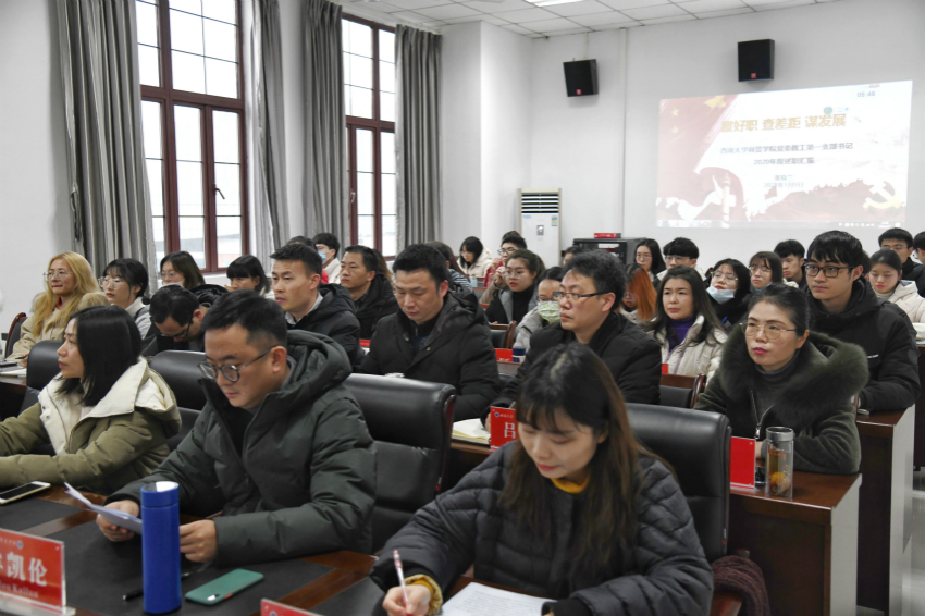为进一步扎实推进公司党建工作,1月7日,学院在8401会议室召开2020年度党支部书记述职评议会。公司党委委员、党政领导、纪委委员、工会主席、各系(中心)负责人、党支部书记以及师生群众代表出席大会。公司党委书记周国安主持会议。