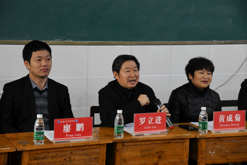 在齐唱国歌之后,英才小学董事长罗立进发言。罗董事长对公司领导们和青年志愿服务团成员的到来表示由衷的感谢和热烈的欢迎。随后,他介绍了英才小学的艰苦创办过程,殷切嘱托英才小学的员工们感恩社会各界关爱,努力学习,报效祖国。