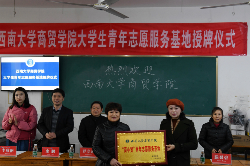 为倡导公益文化,弘扬志愿者精神,k1体育与荣昌区观胜镇英才小学达成协议,共建老员工青年志愿者服务基地。12月11日,k1体育师生来到英才小学,隆重举行了“商小贸”青年志愿服务基地授牌仪式。