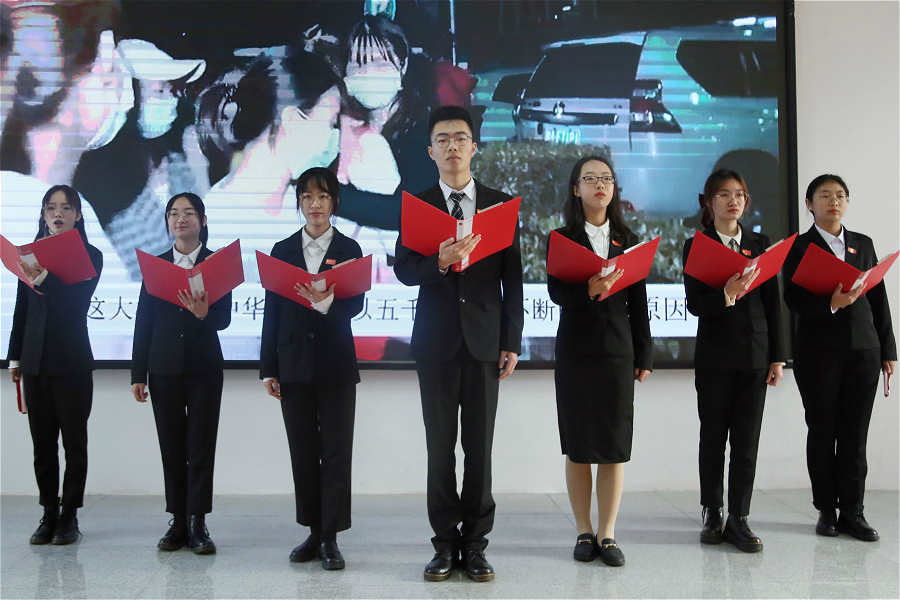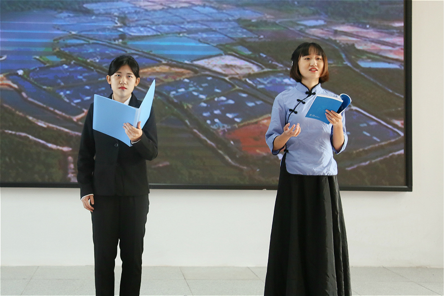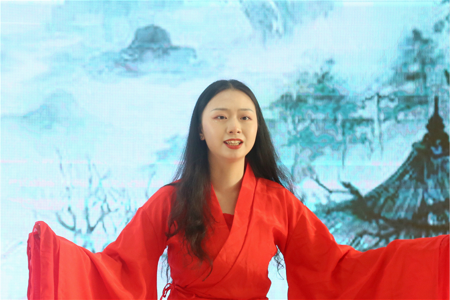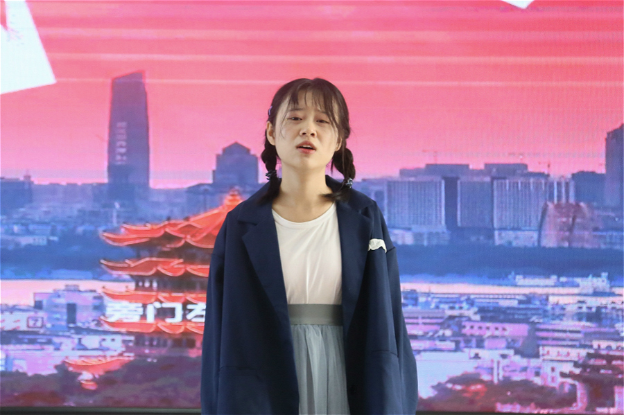 随后,比赛正式拉开帷幕。经过学院初赛选拔,共有15项诵读作品进入决赛。参赛作品有《致中国阻击战》《我的祖国》等集体诵读,也有《时代》《齐新光抗疫之诗:武汉,祖国母亲对你说》等个人诵读作品。诵读形式多样,有《武汉加油》等传统形式的诵读,有《相信中国》等以音乐、吟唱方式的诵读,有《宋韵留情,抒怀于国》等以舞蹈形式的诵读。各位选手所带来的诵读作品,准备充分,用情用心,充分展示了诗文朗诵的艺术感染力和舞台表现力,作品让人赏心悦目,印象深刻,使在场师生充分体会到新冠疫情全民抗疫背景下的民族团结一心、共同奋斗的抗疫精神,充分感受到了祖国母亲的伟大,深刻陶冶了道德情操。