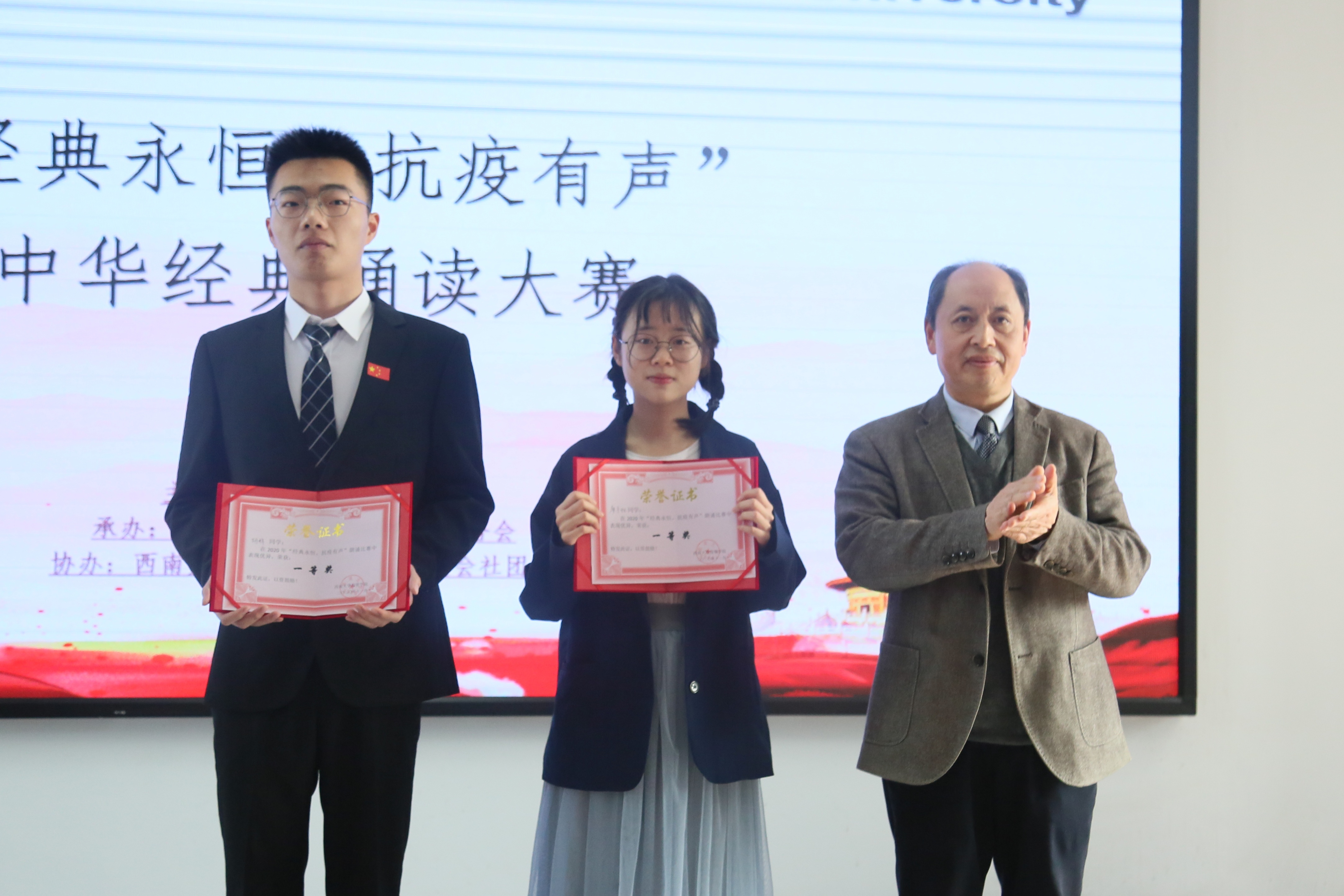 经过激烈的角逐,比赛最终共评选出一等奖两名,二等奖三名,三等奖五名,优胜奖五名。廖宇帆带来的《齐新光抗之诗:武汉,祖国母亲对你说》和胡辉团队带来的《中国阻击战》荣获此次比赛一等奖。