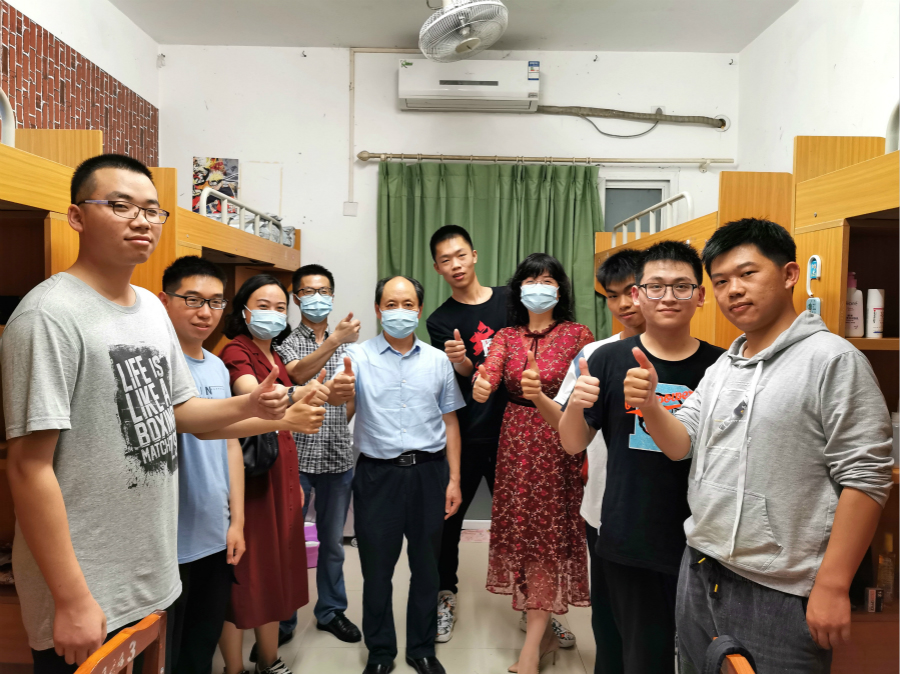 公司办公室主任黄维兵,新生年级辅导员石晶莹、邓婷婷陪同前往走访。