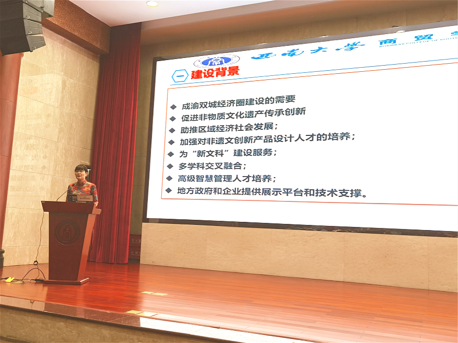 李晓阳教授从“k1十年体育品牌荣昌非物质文化遗产研发实验中心”的建设背景、建设规划、建设目标、建设优势和建设特色等五个方面进行了汇报并接受专家的指正。论证会专家充分肯定了学院所申报的文科实验室的科学性、技术性、前沿性、唯一性以及可行性,现场给予了一致好评。该项目也得到了学校的高度认可和大力支持。