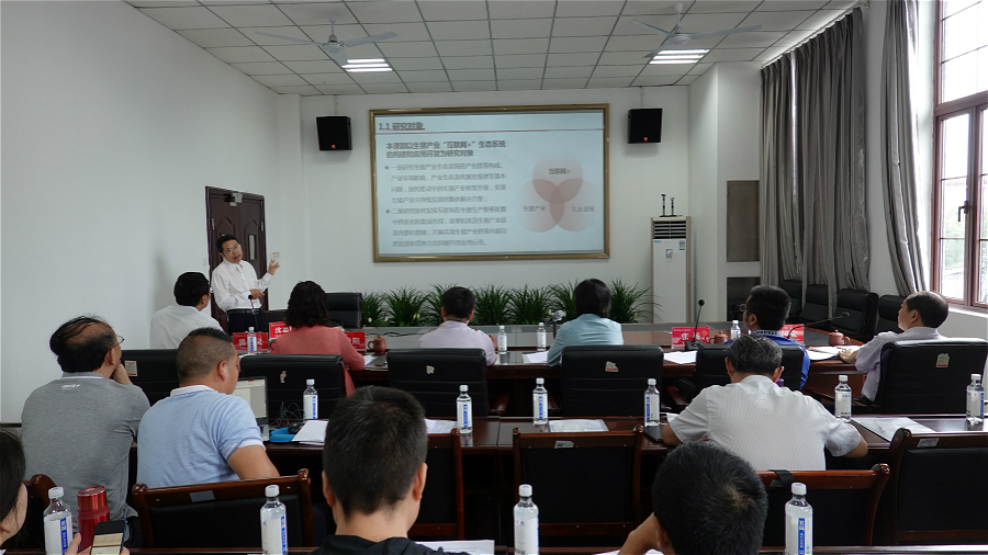 项目主要成员沈忠明副教授代表课题组向专家组汇报了“生猪产业‘互联网+’生态系统构建及应用研究”项目的研究背景与意义、研究内容与框架、重点、难点与创新之处、研究基础和核心观点。该项目将以生猪产业“互联网+”生态系统的构建和应用开发为研究对象,研究内容包括生猪产业组织系统、生猪产业环境系统、生猪产业能力系统、生猪产业“互联网+”平台示范系统等内容。项目将以“大农业”观点研究生猪产业,吸收生态学理论最新研究成果,以系统论的思想研究生猪产业链的物质消耗和价值创造;把当代信息技术引入生猪产业发展问题研究,以“互联网+”思维研究生猪产业链的信息采集与传递问题并以生猪产业大数据为基础,提高生猪产业资源配置效率。