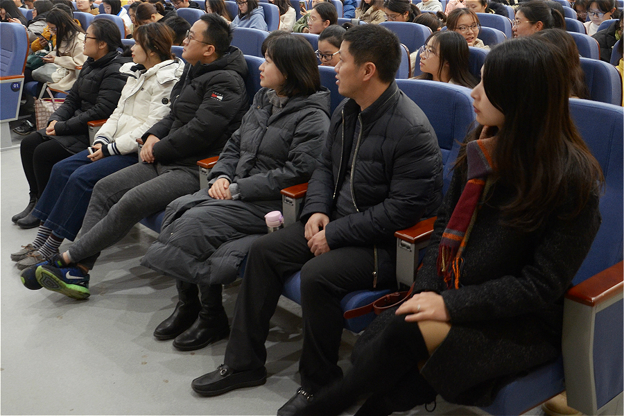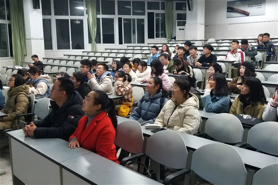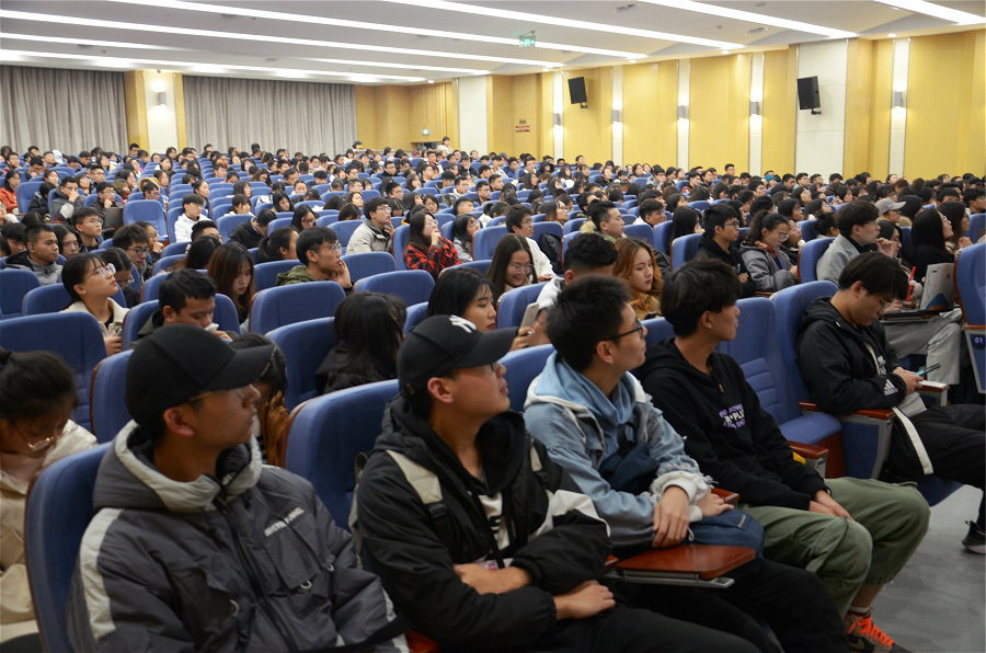 交流会首先在7B201的主会场举行,自愿报名前来参加的低年级同学将近500人。