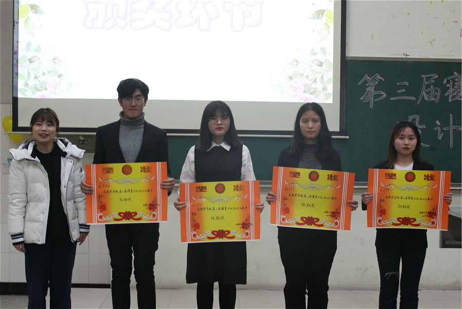 经过评委现场评分,6715寝室荣获大赛冠军,6705、A307寝室荣获二等奖,A319、6605、D104寝室获得三等奖,6710、A315、6210、4504寝室获得优胜奖。同时,A307寝室则通过学院官方微信投票获得“最佳人气寝室”的殊荣。