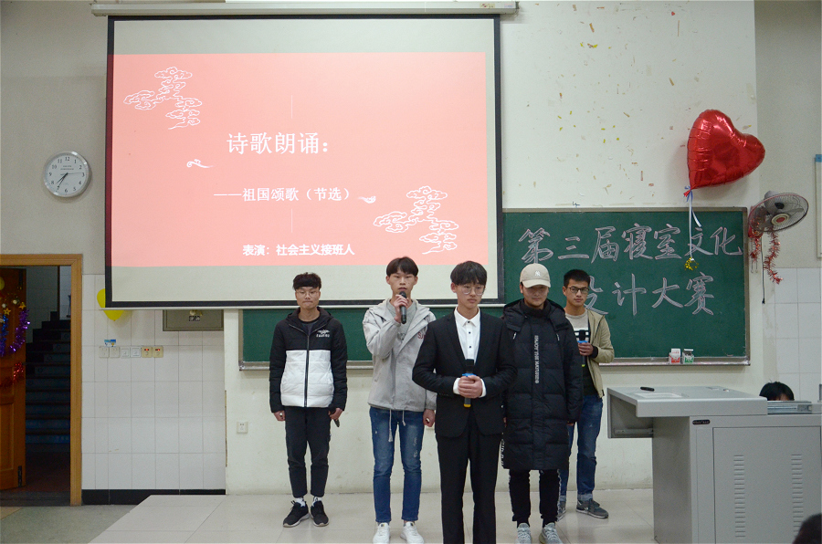 此次比赛分为寝室文化展示和才艺表演两个环节。在寝室文化展示环节,6715寝室以和风为装饰风格,以手工环保为设计理念,向同学们展示了她们宿舍的独特韵味;A319寝室整体走简约温馨的风格,充分表现了寝室的爱与温暖;6705寝室以宁静为设计理念,明志为寝室文化,让观众们感受到了浓浓的书香气息。各寝室主讲人对PPT进行讲解后,其余寝室成员还带来了朗诵、歌舞、情景剧等的才艺表演,展示了商贸学子良好的精神风貌和积极向上的生活态度。