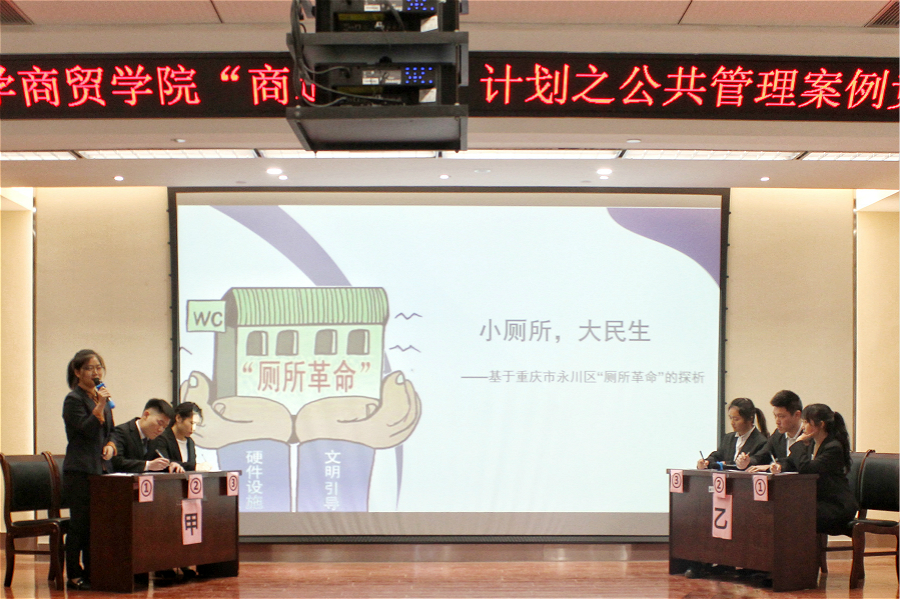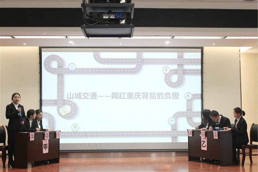 在决赛的展示中,各参赛队伍就本队案例进行了阐述和剖析。各个参赛队伍选题典型,具有专业性和时代性,真正将所学运用于实践之中,评委老师现场对各小组进行了评价。1号“白猫”队伍关注民生实事,以网红重庆山城交通背后的负担为题,从分析交通现状问题、交通规划及其成果、专家建议等方面阐述了队伍的调研成果;9号“对对对”队从区域垃圾分类的合作治理机制研究出发,就垃圾分类发展与概况、现状与问题、意见与建议三方面进行了阐述。