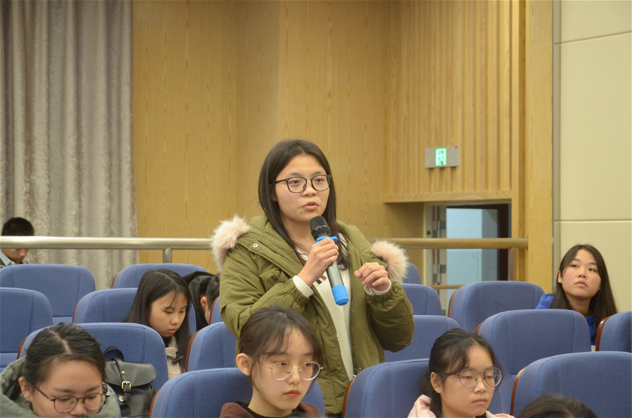 随后,主讲人张颖老师现场分享了面试高效表达的技巧。她提到,面试求职是个双向选择的过程,最重要的是同学们能展示出用人单位需求的各方面素质和能力。张老师解析了面试中的经典问题和回答技巧,在面试交流过程中做到结论先行、以上统下、排列有序、不重复不遗漏。两位老师还就同学们在求职中遇到的问题进行了现场解答。