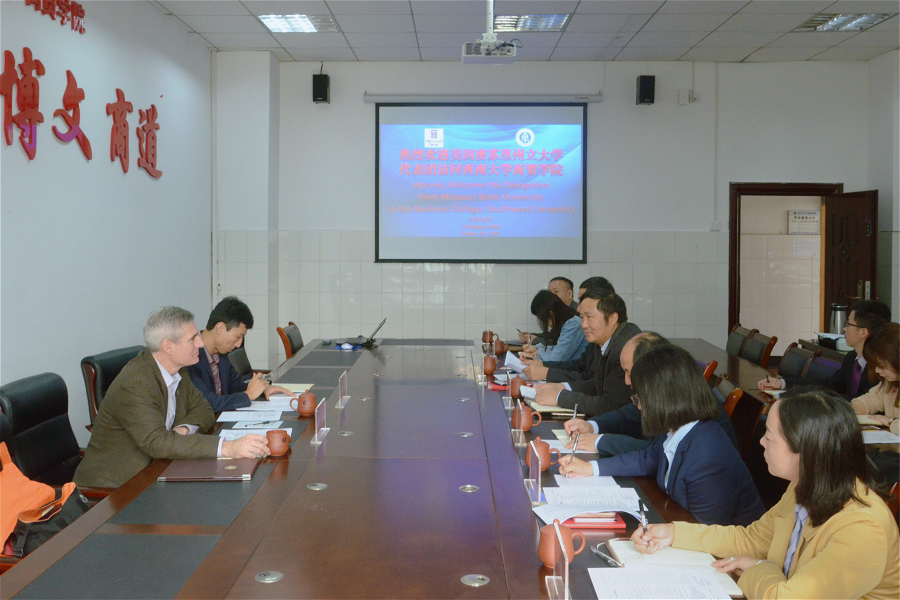布拉德副董事长在洽谈会上介绍了密苏里州立大学的基本情况。他介绍到,密苏里州立大学(MissouriState University)创建于1905年,位于密苏里州斯普林菲尔德市,是一所享有盛誉的美国高校,在全国及地区的商业、政治和教育事务中发挥着重要作用。密苏里州立大学商学院是该校规模最大的学院,也是美国中西部临近八州规模最大的商学院,在校员工人数有5000余人。同时,商学院也是该校最具优势的学院,获得了国际商学院协会认证。他非常愿意做好双方商学院合作人才培养的桥梁。