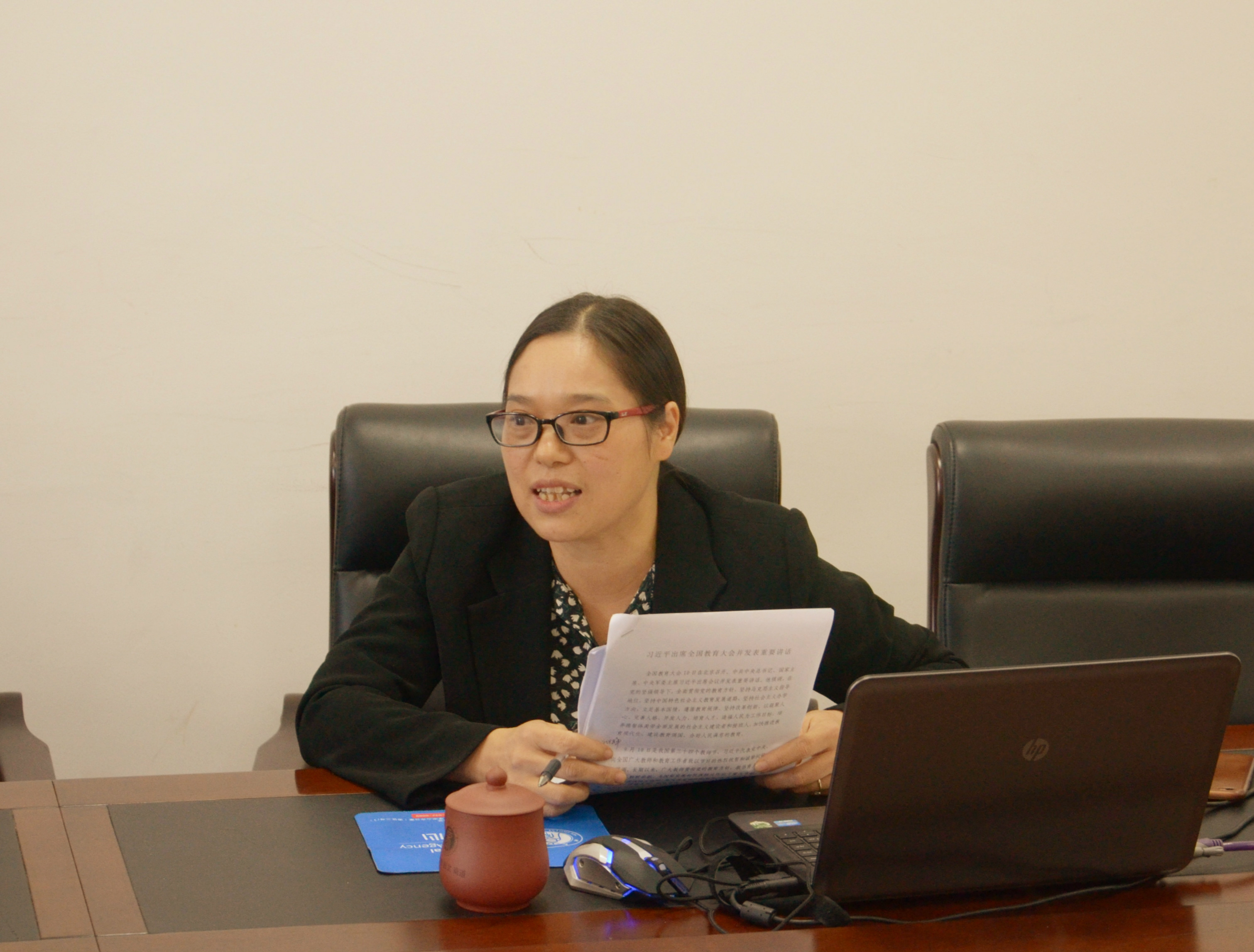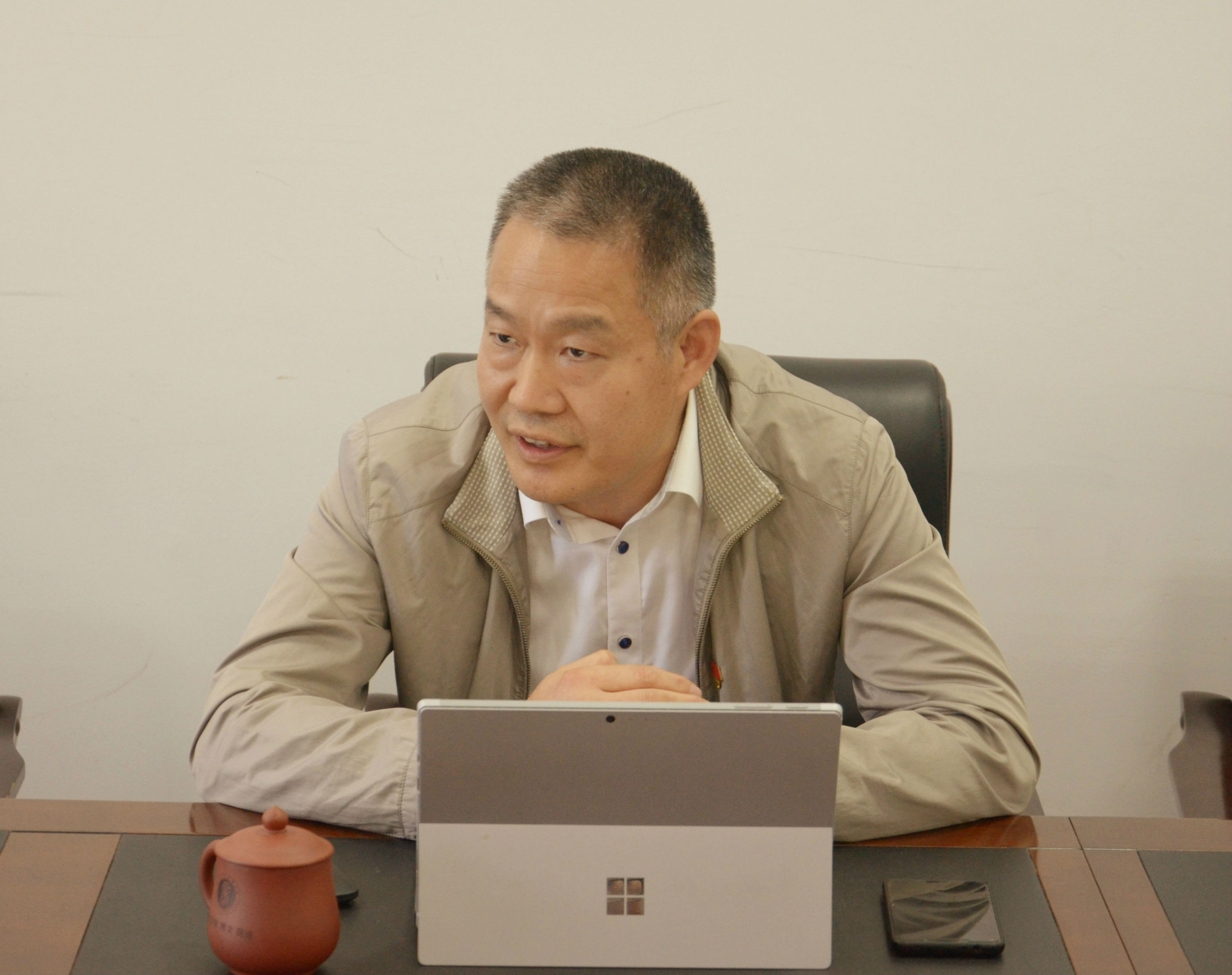 公司经理熊海灵在讨论中发言