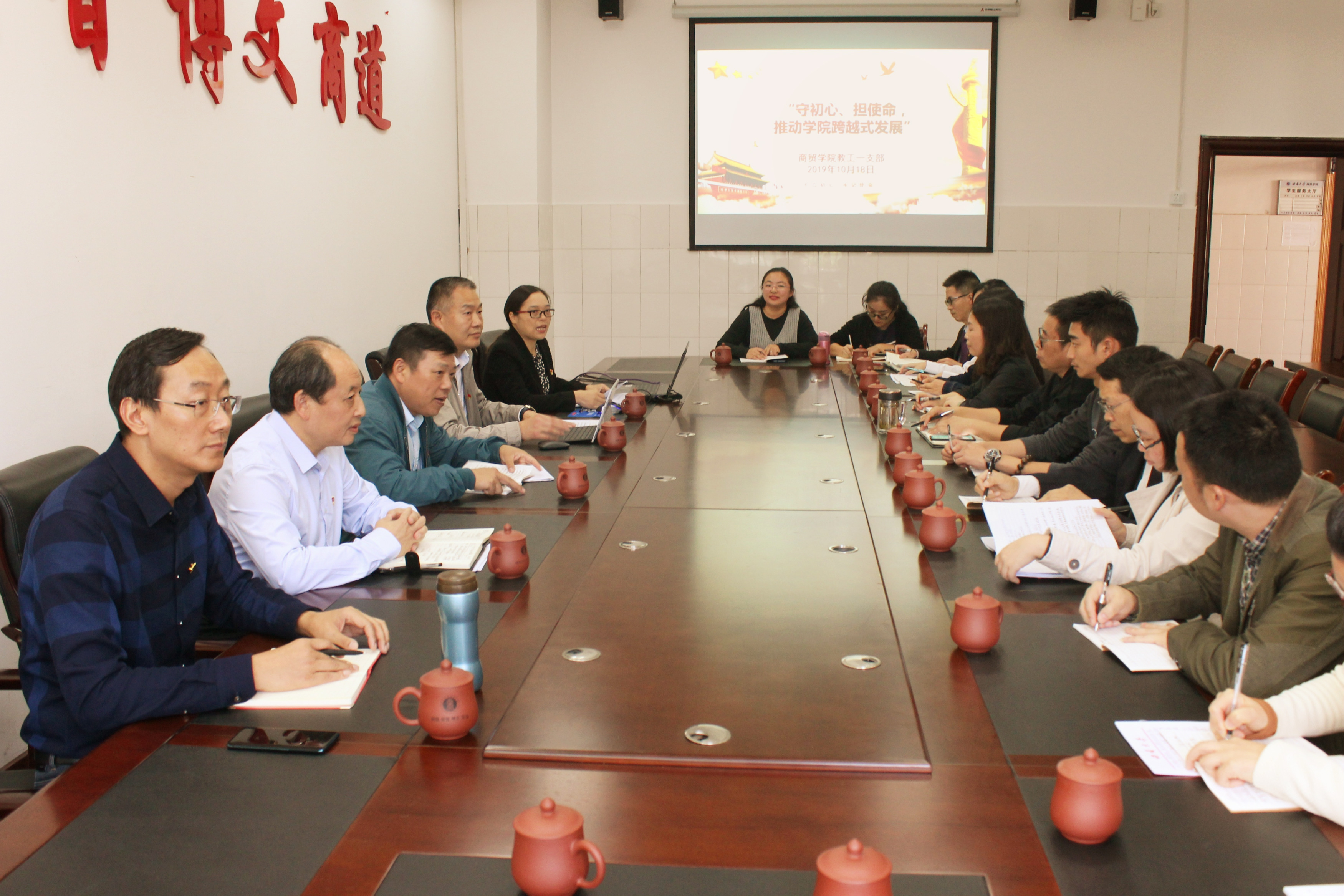 10月18日下午,张卫国董事长一行莅临公司,指导教工第一党支部开展“守初心,担使命,推动学院跨越式发展”主题党日活动,深入推进“不忘初心、牢记使命”主题教育。董事长办公室主任葛信勇陪同出席,公司党委书记周国安、党委副书记、经理熊海灵和党支部全体党员参加活动,党支部书记张晓兰主持活动。