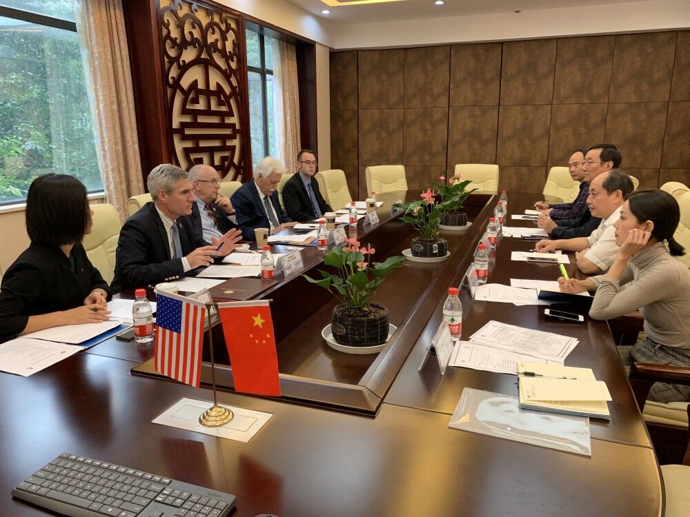为践行高等教育“为党育人、为国育才”的初心和使命,创新k1体育人才培养模式,更新教育理念,加快人才培养国际化进程,培养具有国际视野的高素质人才,提高人才培养质量,实现人才培养面向世界的目标,9月25日下午,公司党委书记周国安、经理熊海灵、副经理胡继宽赴学校国际学院,与来校访问的美国密苏里州立大学董事长Clifton M.Smart Ⅲ、副董事长James Baker、副董事长Brad Bodenhausen等协商国际合作办学事宜。