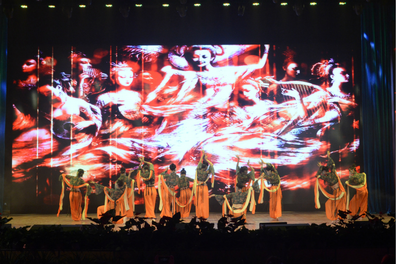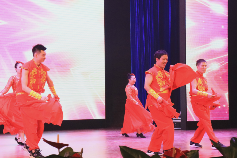 公司教职工选送的舞蹈节目拉开了晚会序幕,在《火了火了火》欢快的音乐声中,老师们走下讲台融入员工,用动感的舞步展现他们的活力四射;舞蹈《致青春》回忆那些年的青葱岁月,品味年少时的美好;歌曲《我们都是追梦人》描绘出中国梦的宏大壮阔,激昂追梦赤子心;霓裳曳广带,飘拂升天行,一舞《敦煌·乐天》清颜古衫,青丝墨染若灵若仙地重现了丝绸之路上驼铃铛铛的千年回眸,将晚会气氛推向了高潮。晚会节目精彩纷呈,现场高潮迭起,展现出商贸师生的时代风貌,这既是奉献给祖国的赞歌,也是展现商贸人勇毅前行的时代旋律。