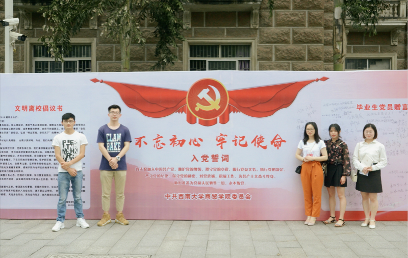 会后,全体毕业生党员来到教学楼前,在展板上手写寄语,为学弟学妹赠言,为母校母院祝福。