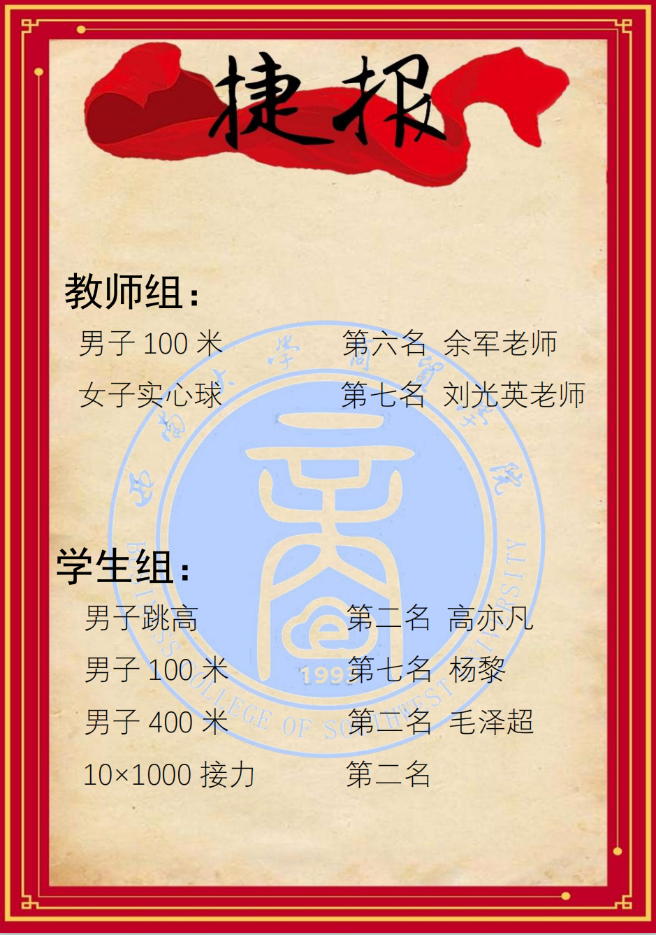 本届校运会4月18日k1体育教职工奖情况如下: