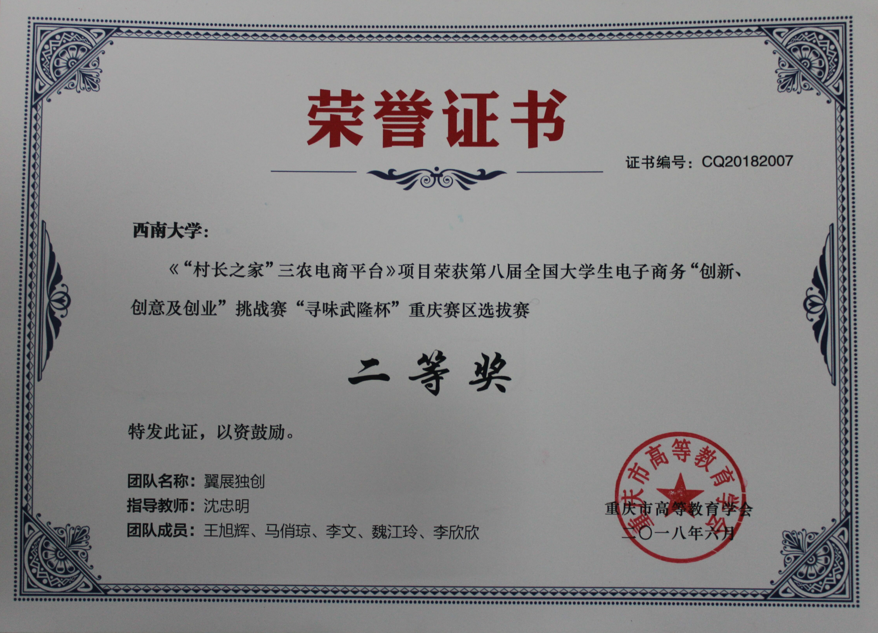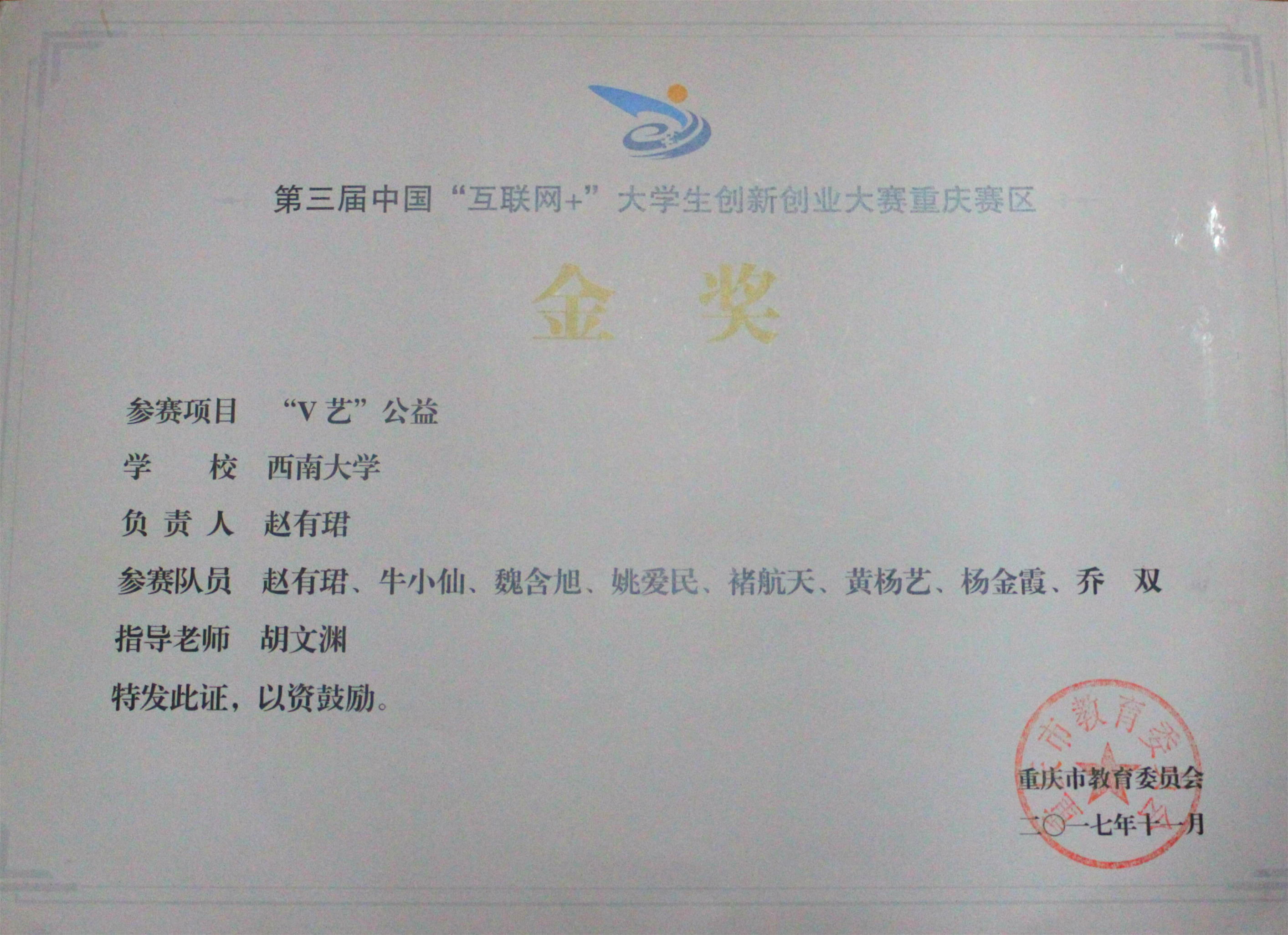 公司2017年成立,一年多来始终高度重视创新创业工作,整体偏向电子商务服务类的创新创业方向。2017年,“V艺”公益项目获得第三届中国“互联网+”大赛重庆金奖;2018年“香帝缘MCN”项目获得第四届中国“互联网+”大赛重庆金奖;“村长之家三农电商平台”获得第八届全国老员工电子商务“创新创意及创业”大赛重庆二等奖;“互联网优质内容服务商”项目荣获“创青春”老员工创业实践挑战赛铜奖。