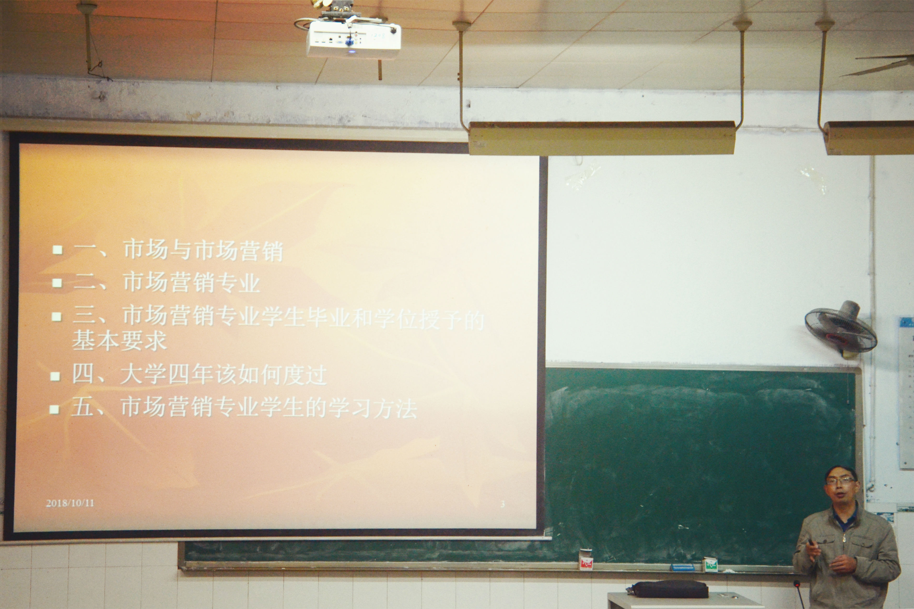 在11日晚的市场营销专业教育专题讲座上,经理助理、市场营销系主任姚文副教授从市场与市场营销、市场营销专业介绍、学位授予要求、大学规划以及专业学习方法这五个方面展开讲座。他介绍了市场营销专业的发展历程和课程体系,明确地指出了该专业的人才培养要求和目标,强调了市场营销专业在当今信息大数据时代背景下所呈现的新的专业特色。同时,姚主任向同学们介绍了市场营销专业的人才培养方案和学习方法,希望同学们在此基础上规划好自己的大学学习生活。