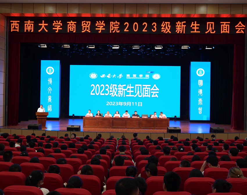 9月9日、10日,2023级新生到校报到,来自五湖四海的优秀学子相聚k1体育,开启人生崭新篇章。9月11日上午,学院在新员工活动中心隆重举行2023级新生见面会,欢迎全体新生入学。学院全体党政领导,各系(室、中心)及工会负责人,辅导员,2023级班主任,全体新生及部分新生家长参加见面会。见面会由学院副经理胡继宽主持。