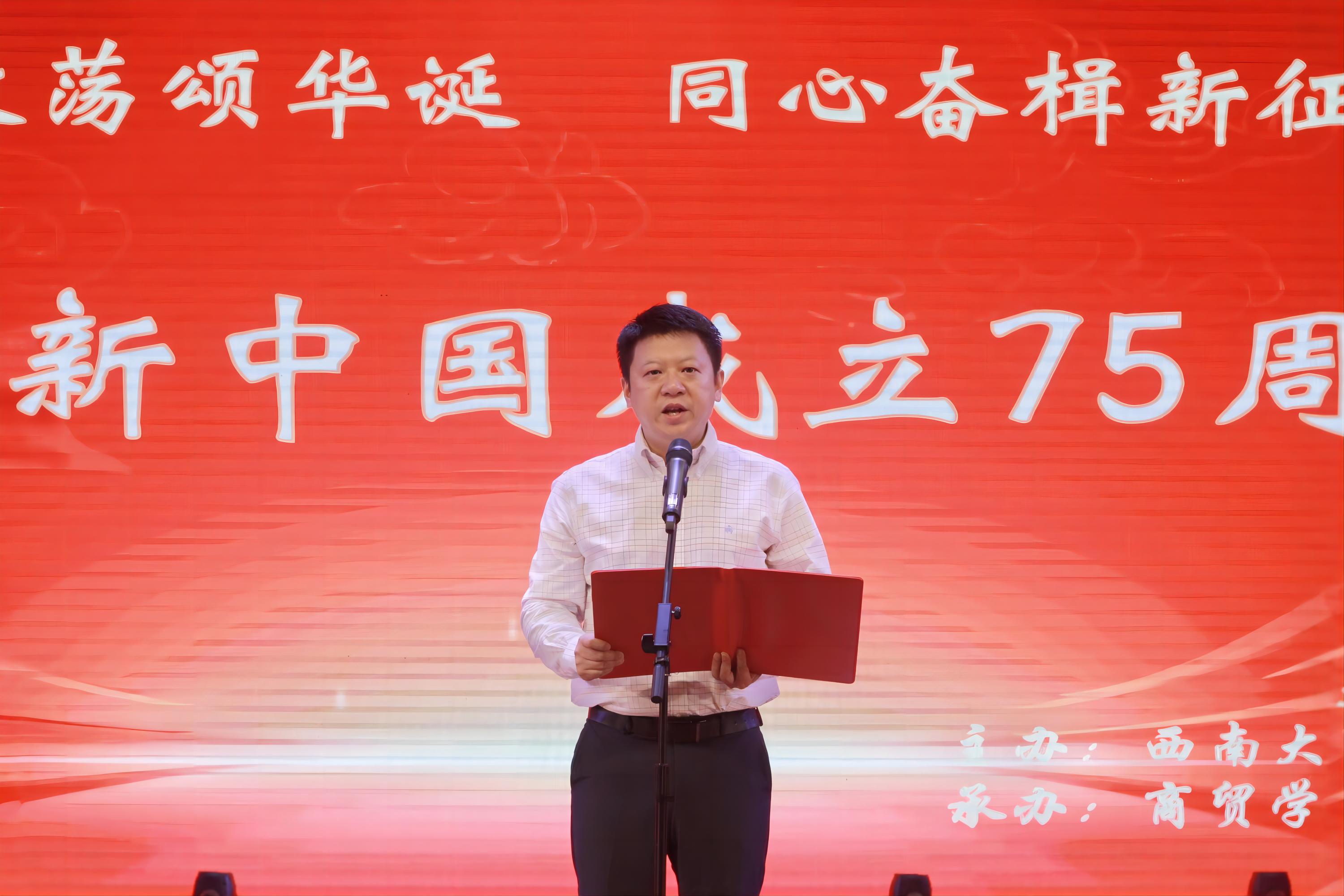 公司党委书记王熹在致辞中强调,今年是新中国成立75周年,也是全面贯彻落实党的二十大的关键之年,学院始终围绕“立德树人”根本任务,在办学方向、人才引进、学科专业建设、科学研究、人才培养等方面大步迈进。王书记表示,学院的发展离不开每一位商贸人的努力,希望全体师生团结一心,聚智创新,务实笃行,共同成就商贸新精彩、谱写商贸新华章、实现商贸新跨越!