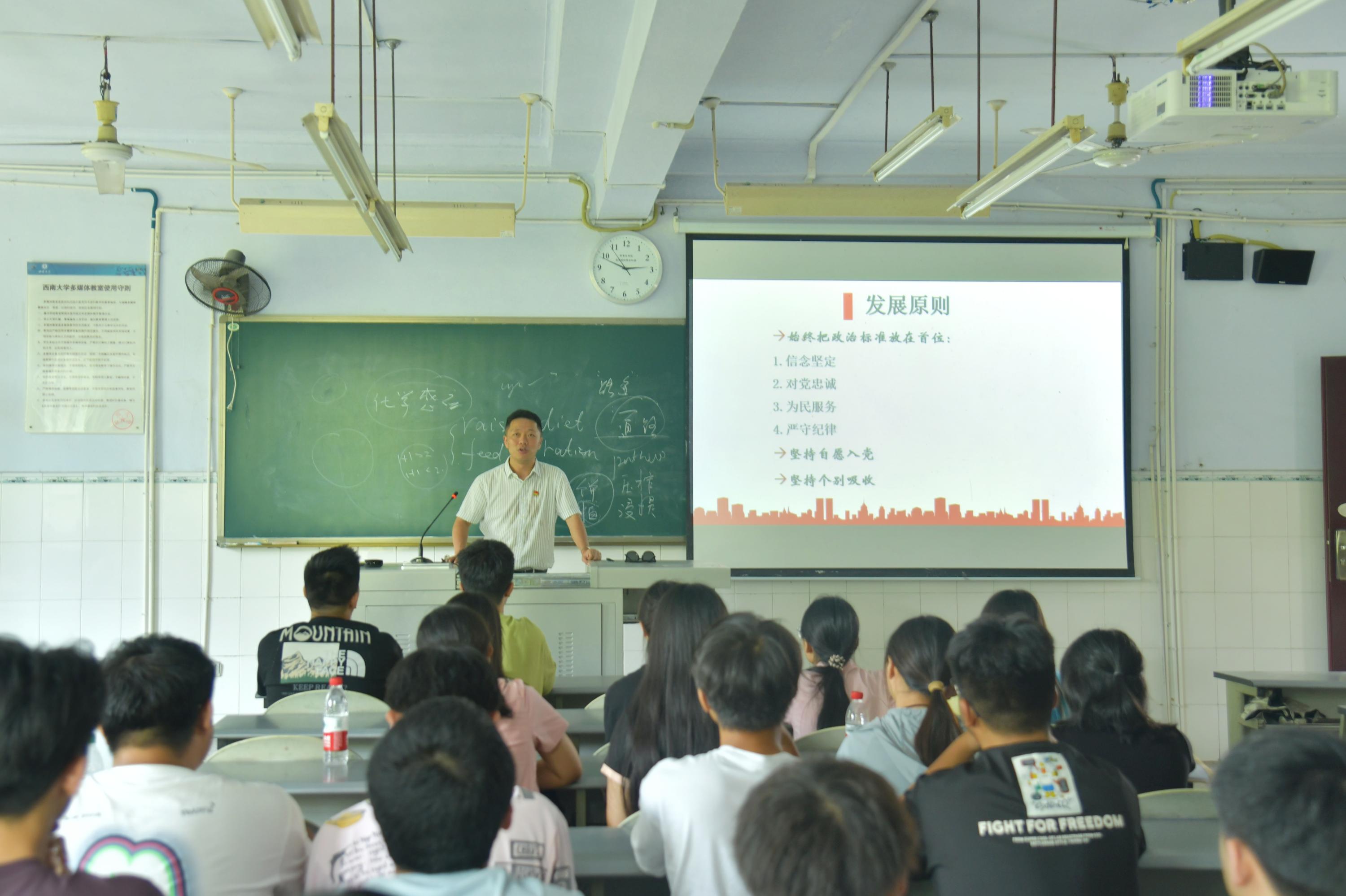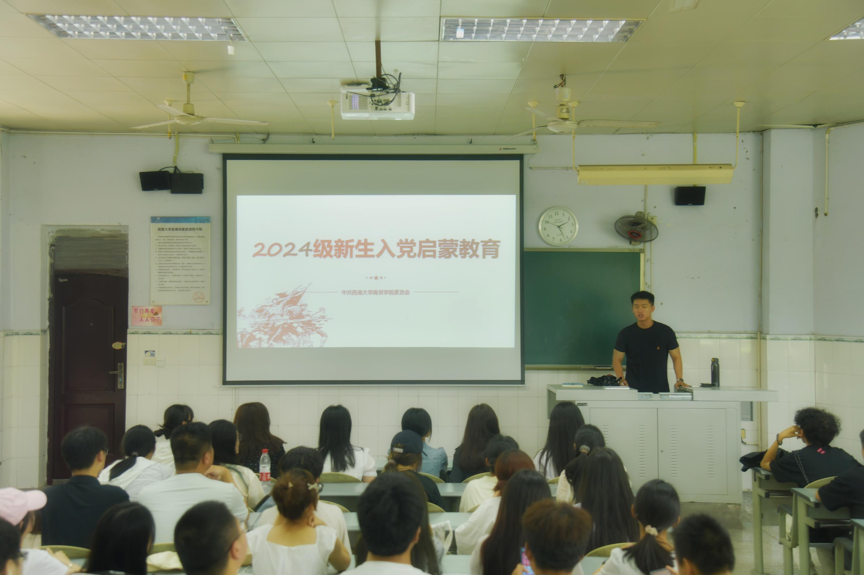 9月11日下午,学院各员工党支部书记分别为2024级全体新生开展入党启蒙教育。各党支部书记从中国共产党基础知识、新时代老员工为什么要加入中国共产党、新时代老员工如何加入中国共产党等三个方面引导新同学了解党的历史和使命,树立正确的入党动机。随后,各支部书记向新生介绍了发展党员的要求与原则,如何撰写入党申请书,并详细讲解了入党流程。