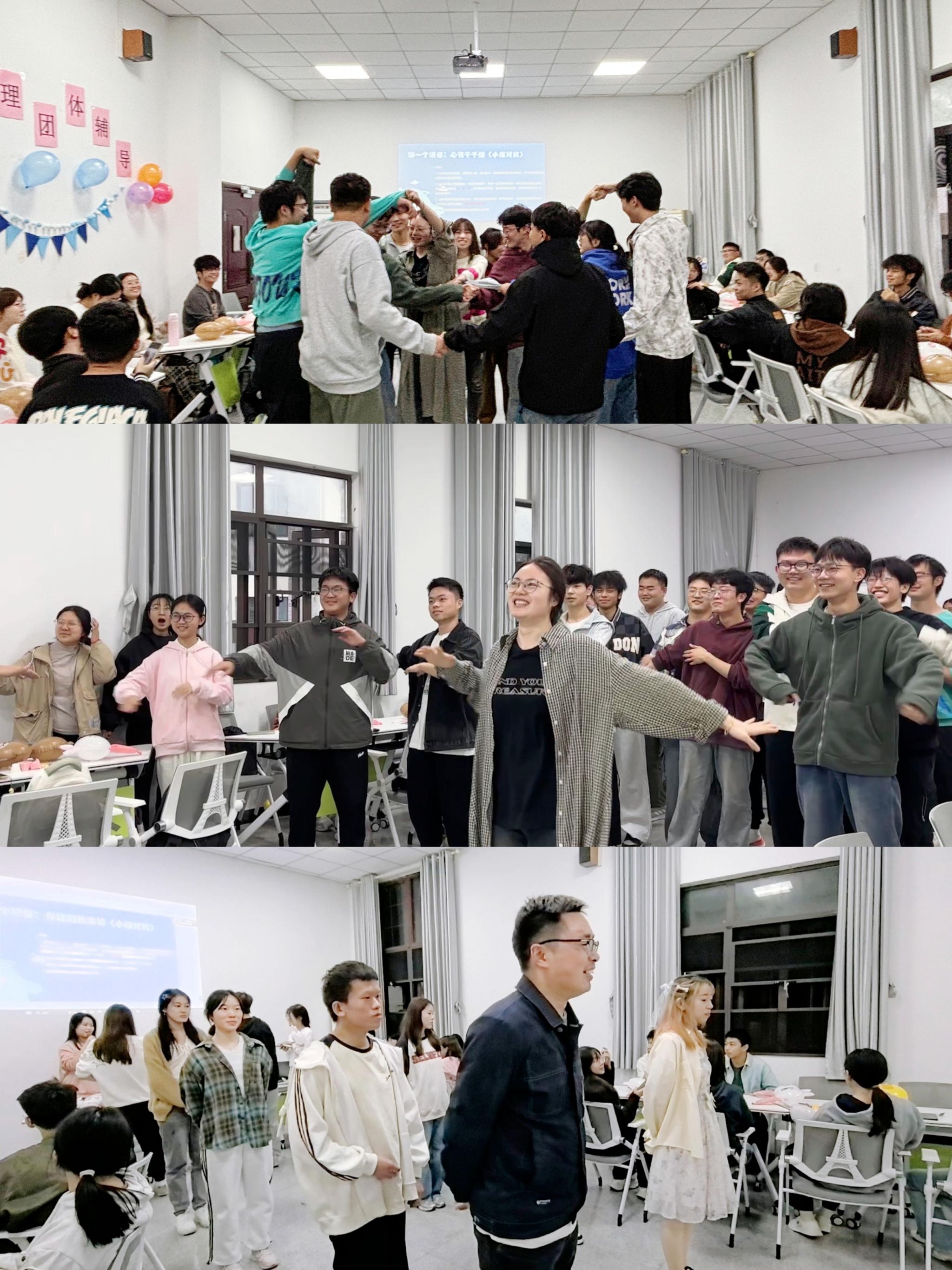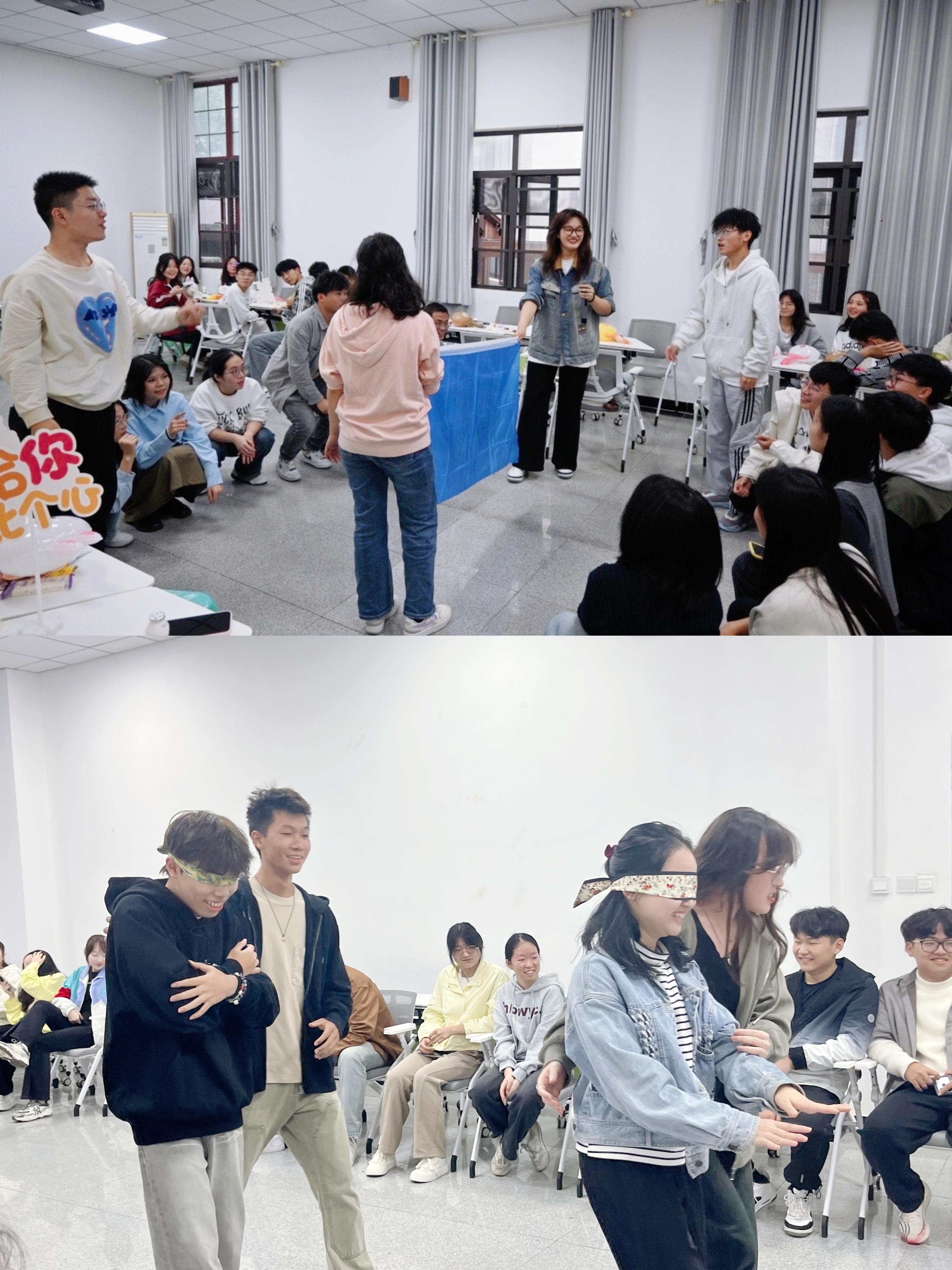 活动伊始,通过一系列如 “消气操”等简单有趣的热身活动,迅速点燃了现场的气氛。轻松愉快的氛围让同学们在欢声笑语中手舞足蹈,逐渐敞开心扉。