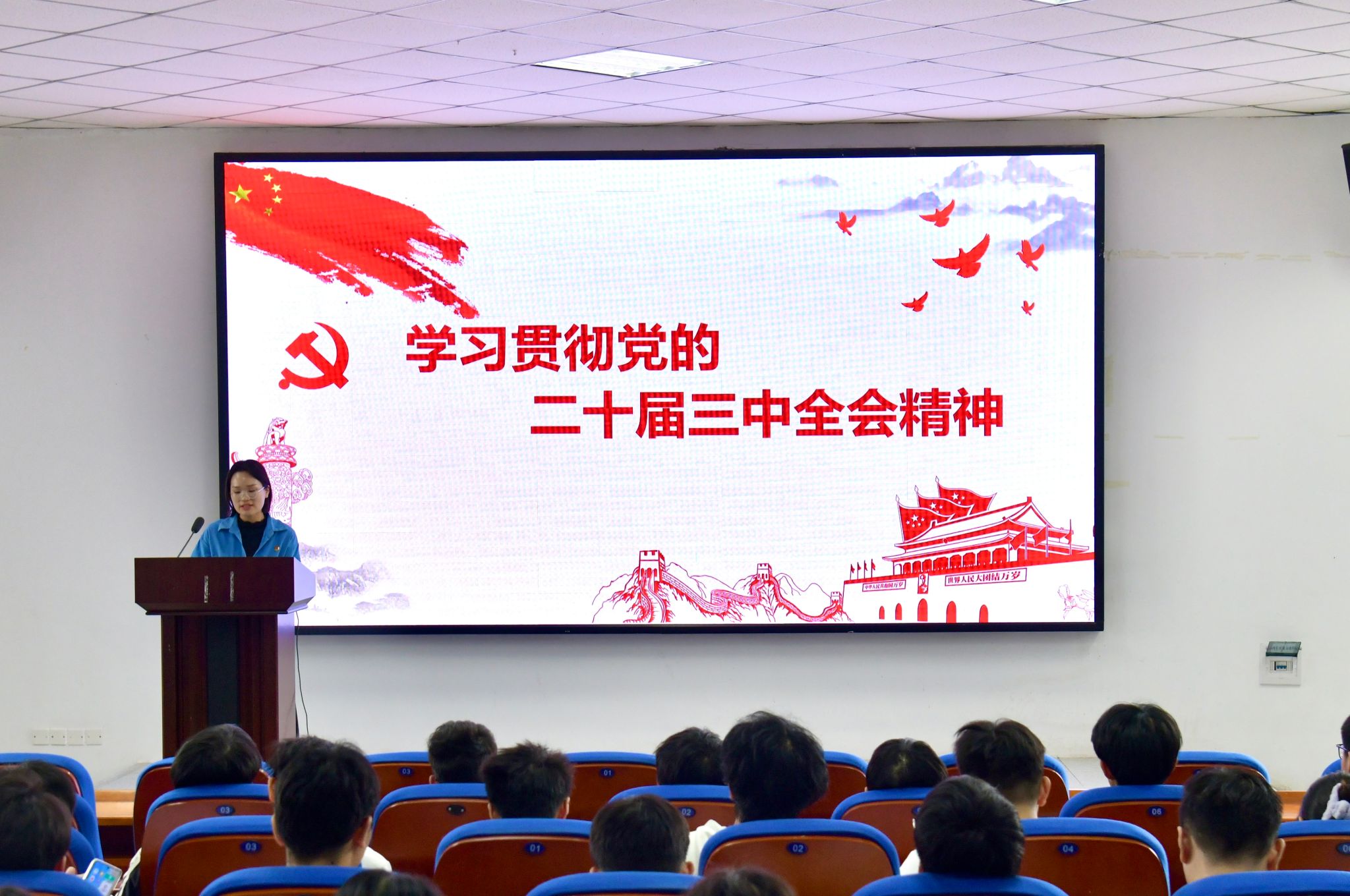 宣讲老师结合实际,从深刻认识党的二十届三中全会的重大意义、深入学习领会习近平总书记在党的二十届三中全会上的重要讲话精神、全面准确理解《中共中央关于进一步全面深化改革、推进中国式现代化的决定》提出的重大举措等方面,向全院师生宣讲党的二十届三中全会精神,帮助老师们、同学们进一步加深对全会重大意义、丰富内涵和精神实质的理解和把握。