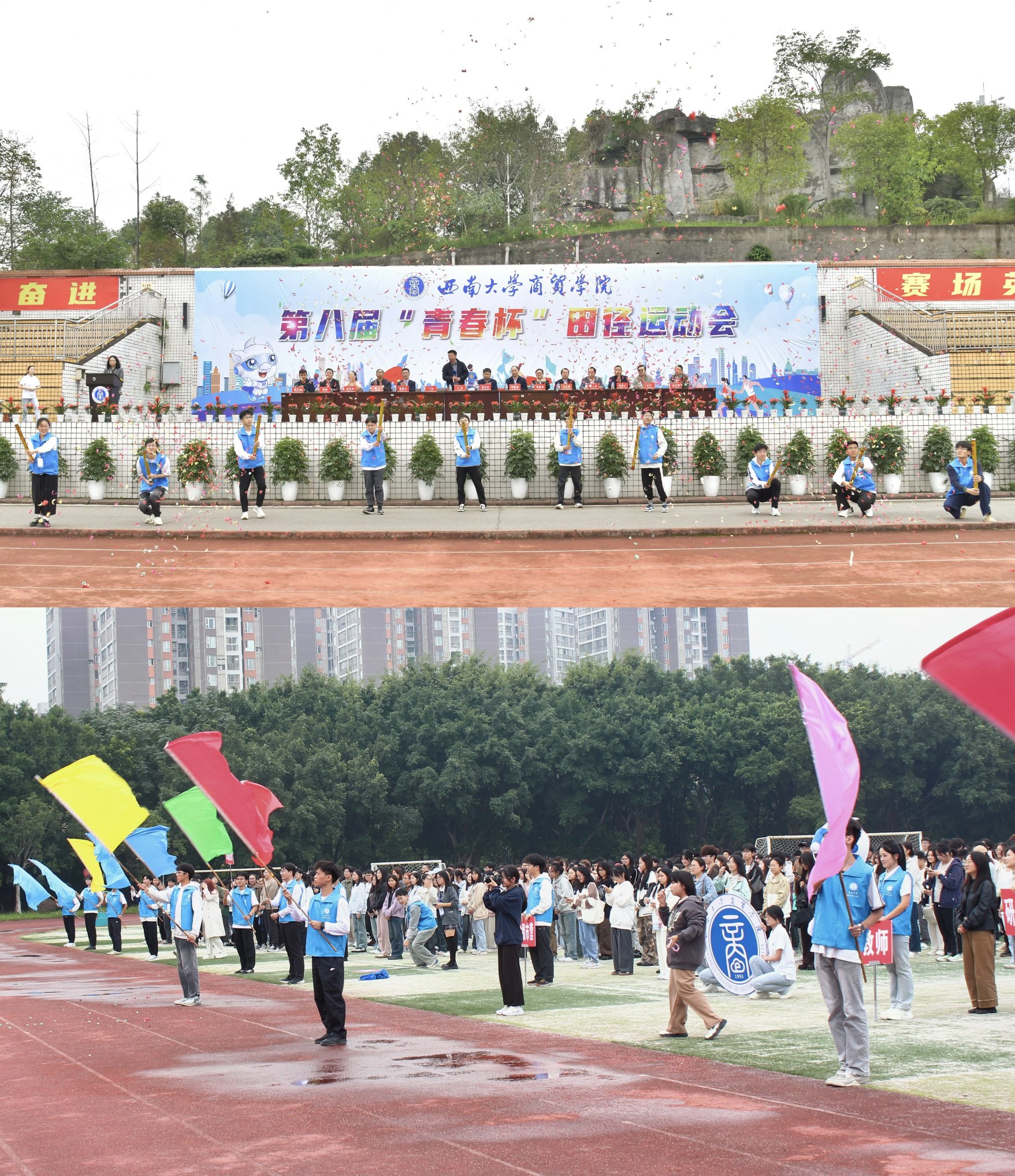 伴随着红旗飘扬、彩旗猎猎以及礼炮的轰鸣声,比拼正式开始。赛场上,运动员们身姿矫健、脚步不停、拼搏不懈;赛道旁,同学们加油声、欢呼声热情如潮、交织一片、此起彼伏。摆臂、跳跃、接棒,一举一动之间,运动员们尽情挥洒青春的活力,尽显青春的风采。