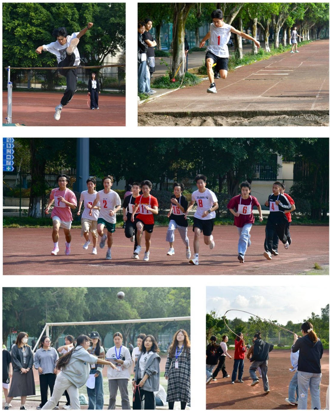 此外,学院全体教职工也参与到本次运动会中。老师们在自行车、滚铁环、跳绳和投篮等趣味活动中尽情挥洒汗水,放松身心,体验乐趣,与同学们一起享受这体育盛会。