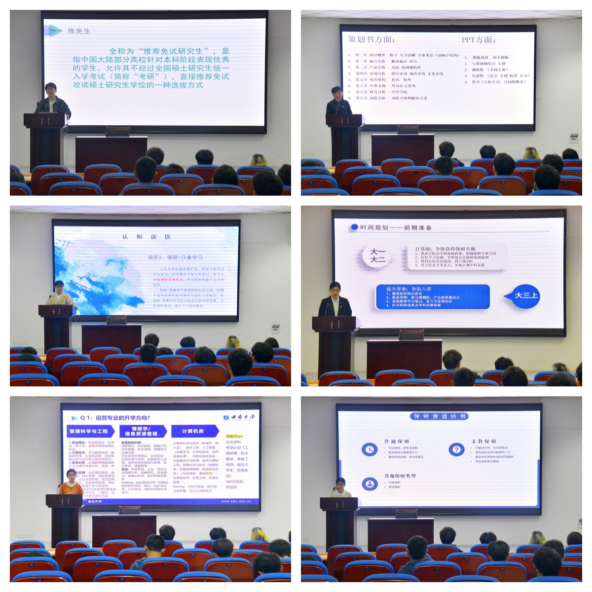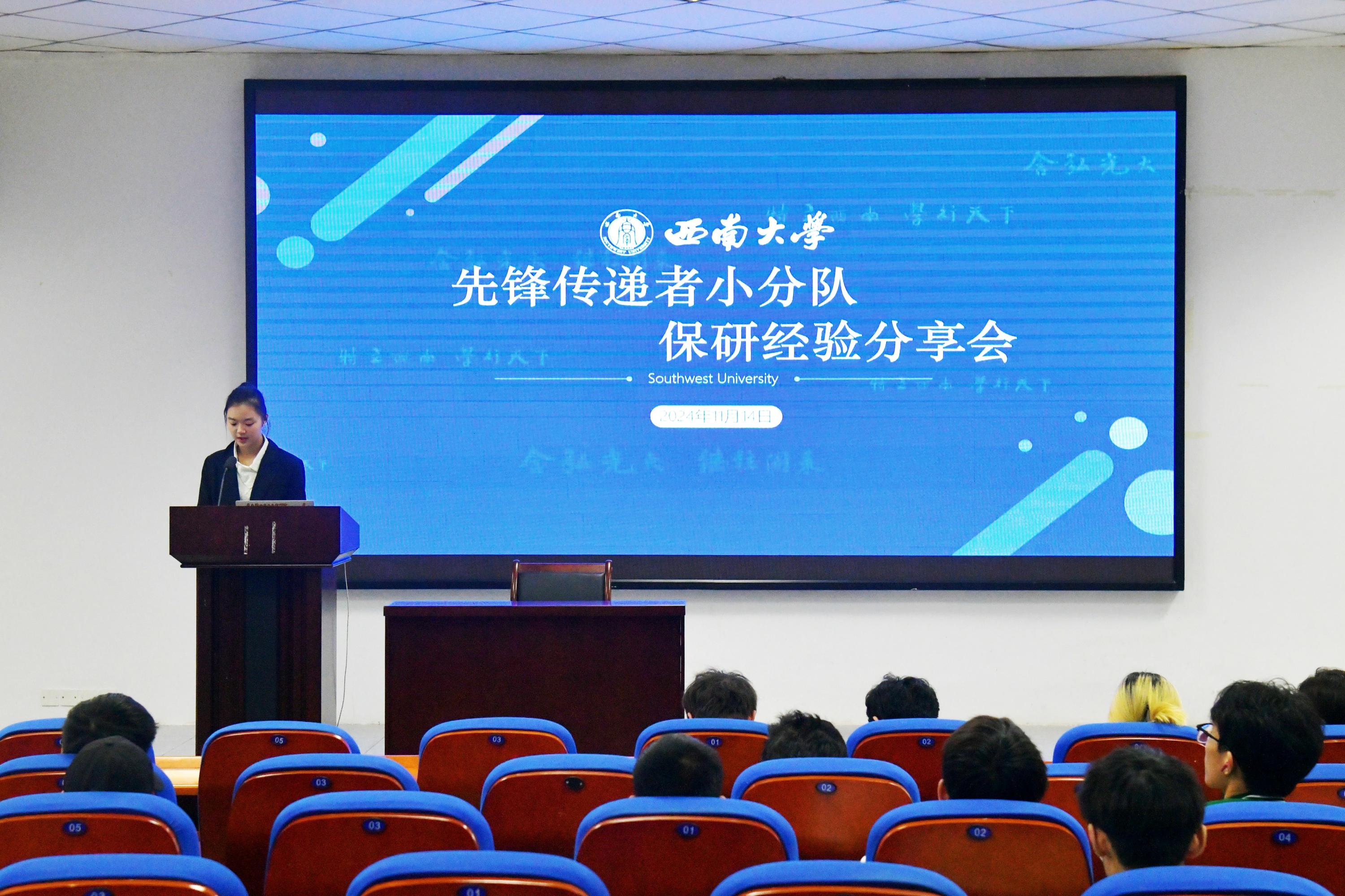 分享会上,“先锋传递者小分队”各成员逐一分享自己的推免上岸历程,主要涉及推免条件、推免准备、院校选择等方面。推免至重庆大学的张震、夏茂天分享了各自的强项,前者介绍了推免资格获取的各项条件,如绩点要求、竞赛加分等,后者则侧重于科研经历的重要性,鼓励学弟学妹们多参加项目多写论文。推免至上海大学的马照明着重强调了专业课程学习成绩的重要性,建议学弟学妹们要从大一开始就要扎实学好每一门课。推免至暨南大学的邹志远围绕夏令营和预推免申请流程进行分享,提醒学弟学妹们要提前规划,提高英语水平。推免至西北工业大学的冯迦慧介绍了如何根据专业发展方向来选择推免院校,并向同学们提供了关于保研的宝贵的面试经验。k1十年体育品牌第27届研究生支教团”张晶晶重点介绍“研究生支教团”项目,鼓励愿意去边远地区奉献自我的学弟学妹们积极报名竞选。