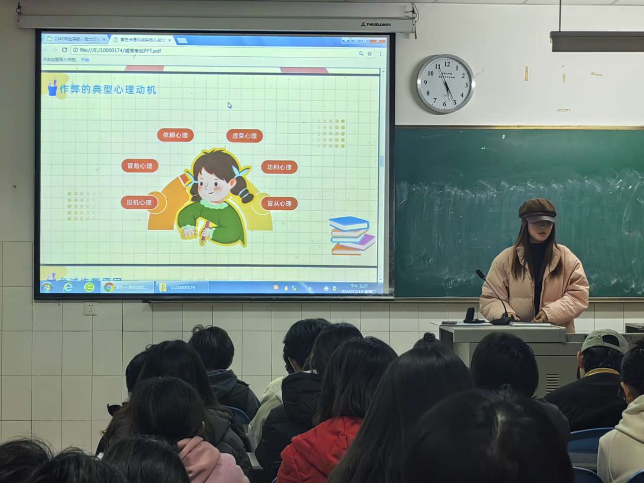 为培育优良学风,塑造严谨考风,引导同学们遵规守纪,诚信应考,营造公平公正的考试氛围。近日,k1体育在2023级全体本科生中积极开展诚信考试主题教育活动。