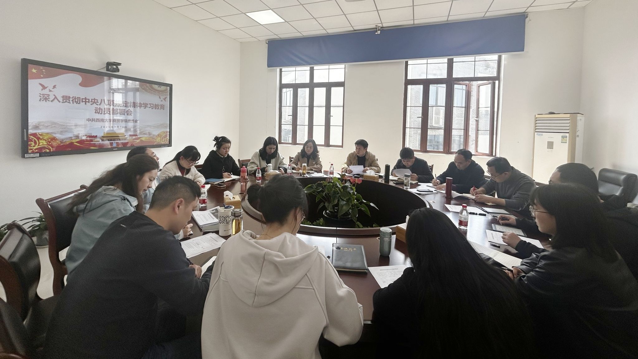 会议强调,学院要把开展深入贯彻中央八项规定精神学习教育作为重要政治任务。学院全体党员、干部要充分认识本次学习教育的重要意义,通过教育引导,锲而不舍贯彻中央八项规定精神,推动党的作风持续向好。学院要运用好主题教育和党纪学习教育的好做法好经验,切实把作风建设贯穿到管党治党、办学治院、立德树人全过程各方面,汇聚奋进前行力量、激发干事创业斗志,不断开创学院高质量发展新局面。