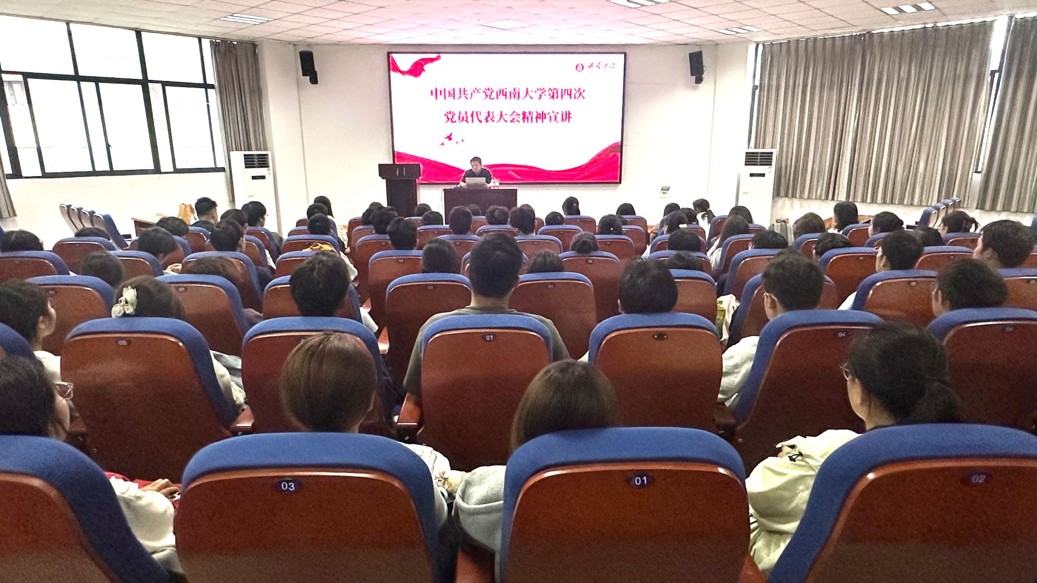 宣讲人系统地介绍了党代会主题、重大意义和主要成果,并说明报告起草过程,回顾了第三次党代会以来学校在党的建设、立德树人、学科专业、科学研究、团队队伍、社会服务、国际交流、内部治理、条件保障等九个方面取得的主要成就,并依据国家战略和学校、学院实际,对未来发展战略与重点任务作介绍。