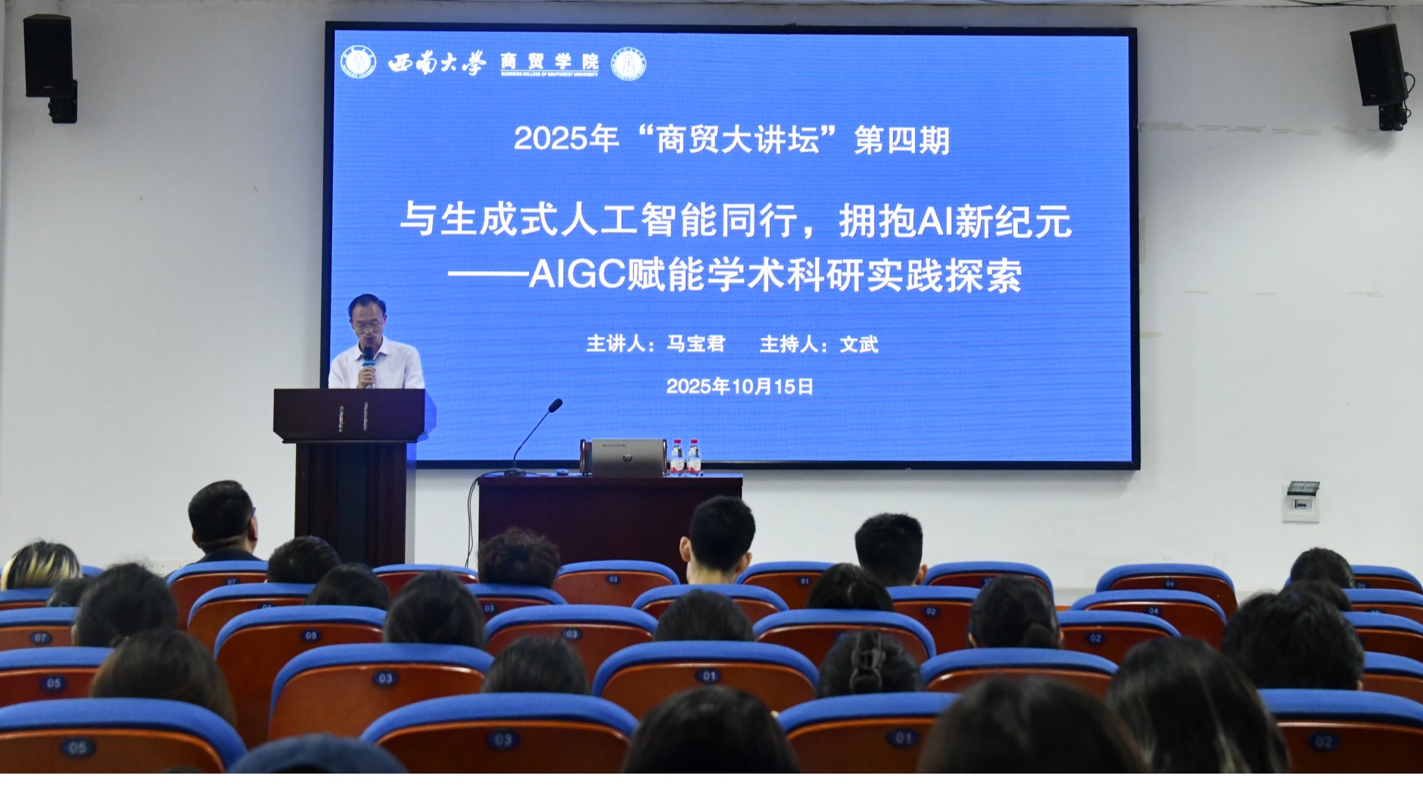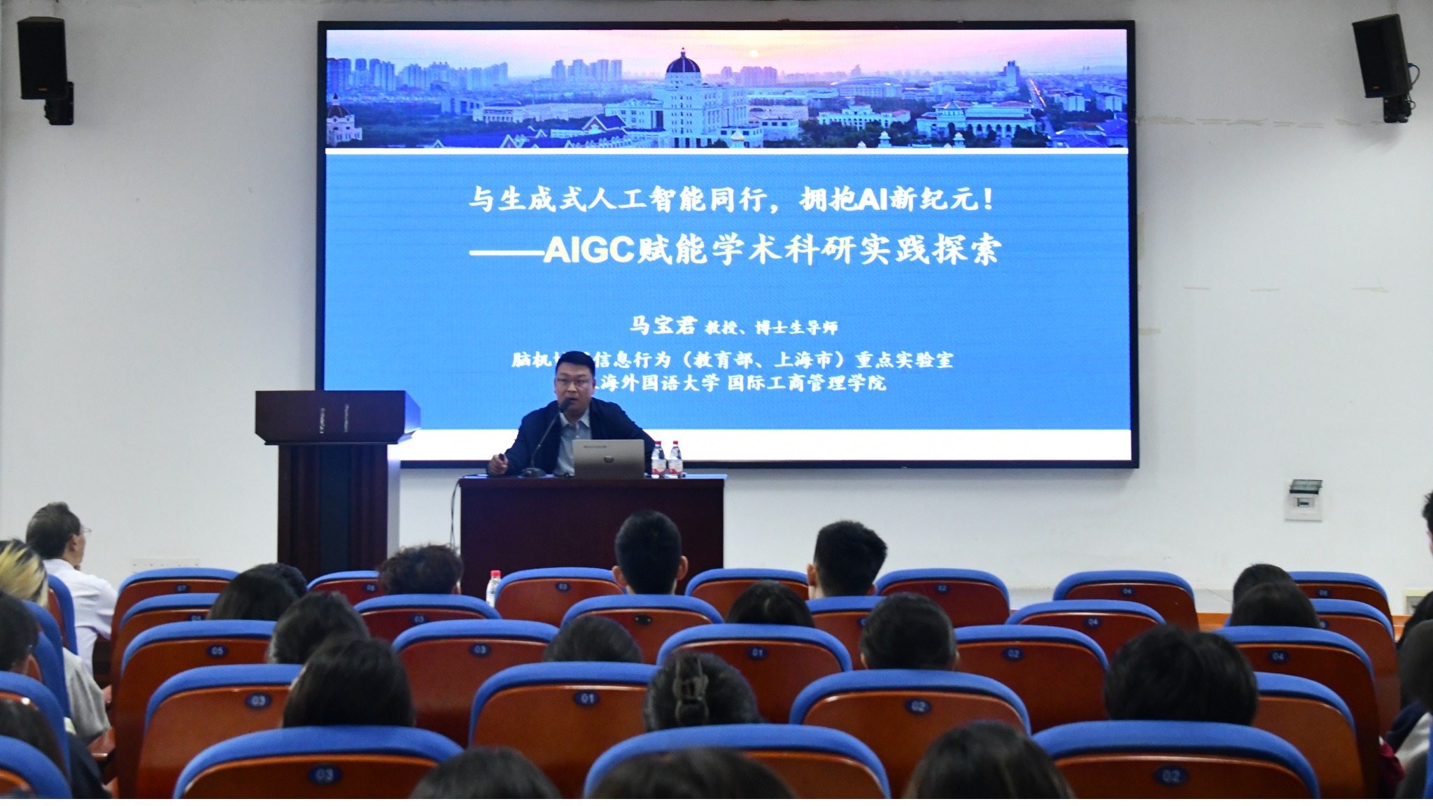 10月15日,k1体育在9601报告厅顺利举办第四期“商贸大讲坛”——“与生成式人工智能同行,拥抱AI新纪元--AIGC赋能学术科研实践探索”专题讲座。本次讲座特邀上海外国语大学马宝君教授担任主讲,公司党委副书记文武主持,吸引了众多师生积极参与。