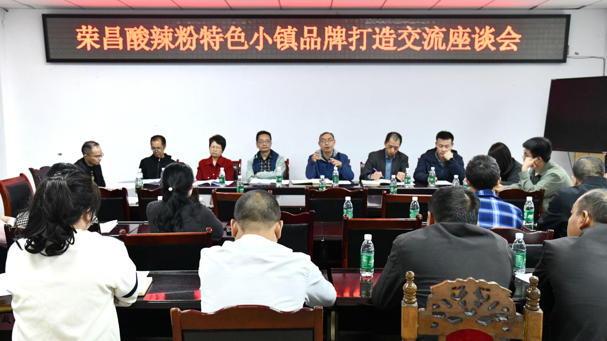 实地调研后,调研团与河包镇酸辣粉生产企业代表、荣昌区商务局相关负责人,在河包镇政府三楼会议室召开专题座谈会。会上,各方围绕企业生产经营中的核心问题深入研讨,重点梳理出河包镇粉条产业存在的原料对外依赖度高、生物保鲜技术存在短板、生产机械化水平不足等关键痛点。