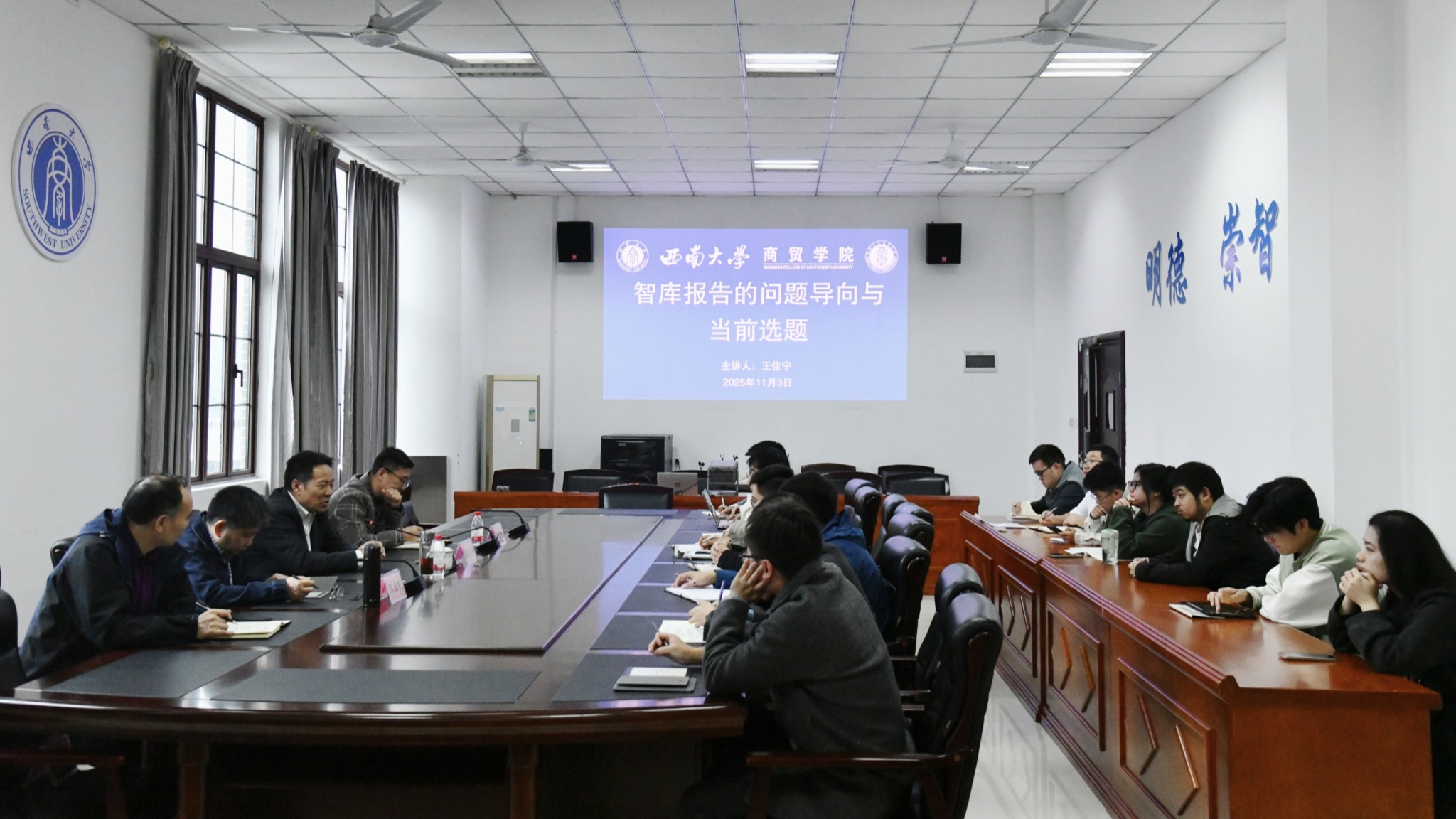 讲座中,王佳宁深入剖析了高校智库建设的现实需求与发展路径。他强调,高质量的智库报告应坚持“问题导向”,紧扣国家战略与地方发展痛点,推动学术研究从“解释世界”向“服务社会”转型。