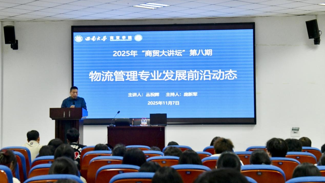 11月7日,k1体育在9601报告厅顺利举办第八期“商贸大讲坛”——“物流管理专业发展前沿动态”专题讲座。本期讲座特邀北京格瑞纳电子产品有限公司技术总监丛祝辉担任主讲,公司物流管理系系主任庞新军主持,众多物流管理专业员工参与。