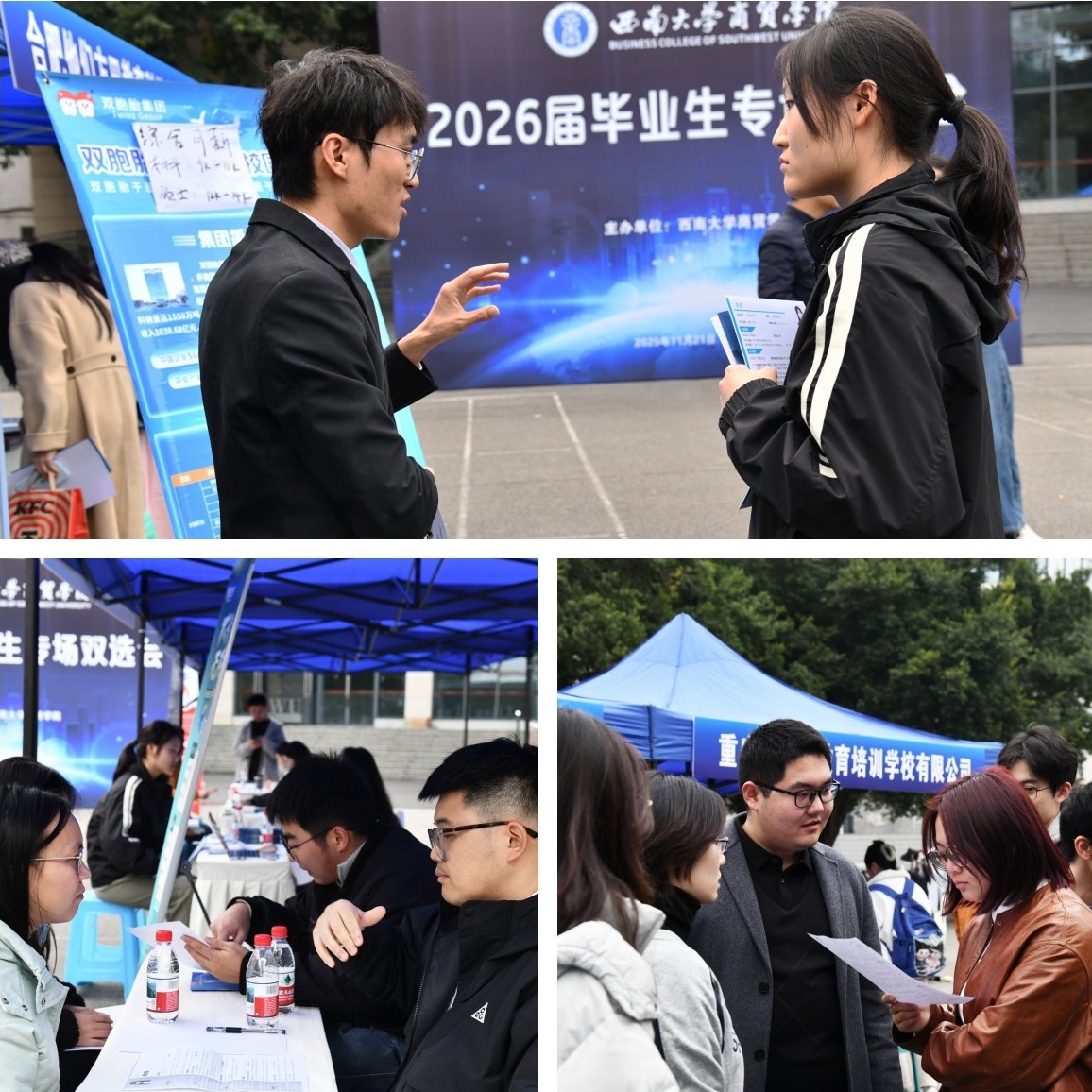 本次双选会邀请了方田教育科技有限公司、双胞胎集团、北斗遨翔(北京)科技有限公司、四川阔源建筑劳务有限公司、四川丽芒商贸有限公司、美宜佳控股有限公司、绿盟科技集团股份有限公司、浪潮数字企业技术有限公司、重庆新东方教育培训学校有限公司、深圳市星特科技股份有限公司、北京挑战集团等11家企业来院专场招聘,涵盖教育、科技、金融、服务等领域,岗位需求广泛,专业匹配度高。